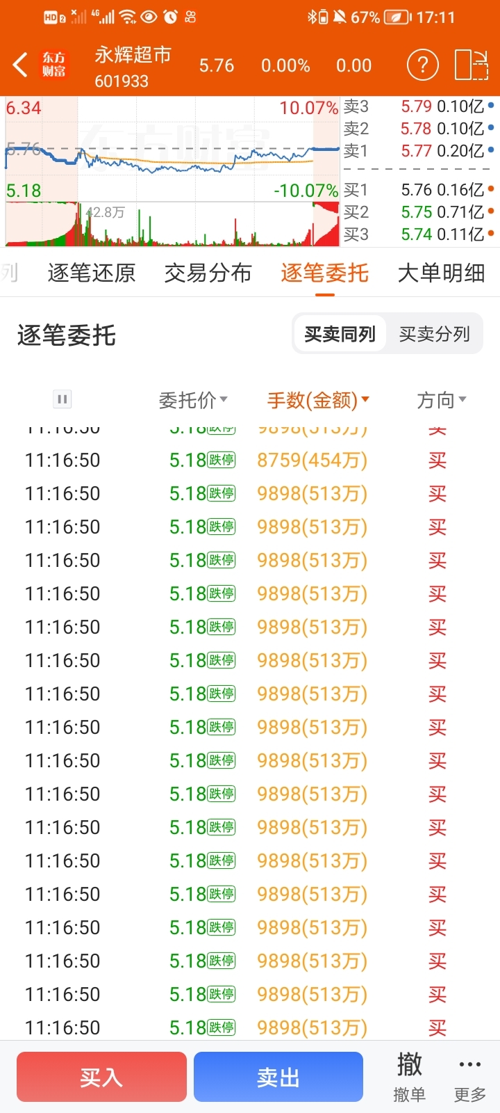 $永辉超市(SH601933)$ 哟西,嗦跌死捏