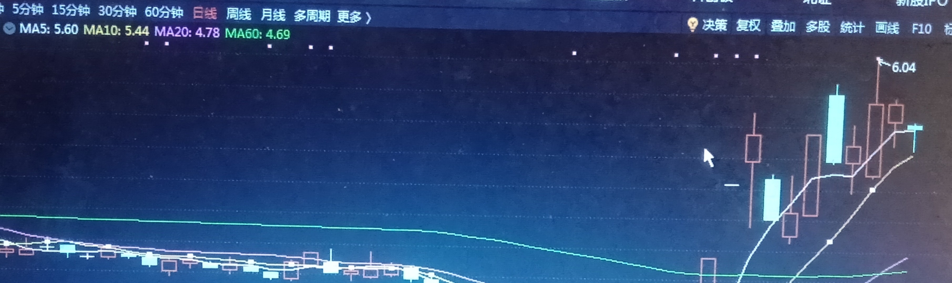 操作短线的人要注意啊,日线,10日线5.44为底线,这个点不下破那么没有关系。主力如果想继续拉涨,那么10日线5.44附近回踩过以后会继续拉涨,但是也要注意,这个5.44底线千万不能下破,下破直接就大幅度减仓,或者继续离开。请大家不要跟风操作。