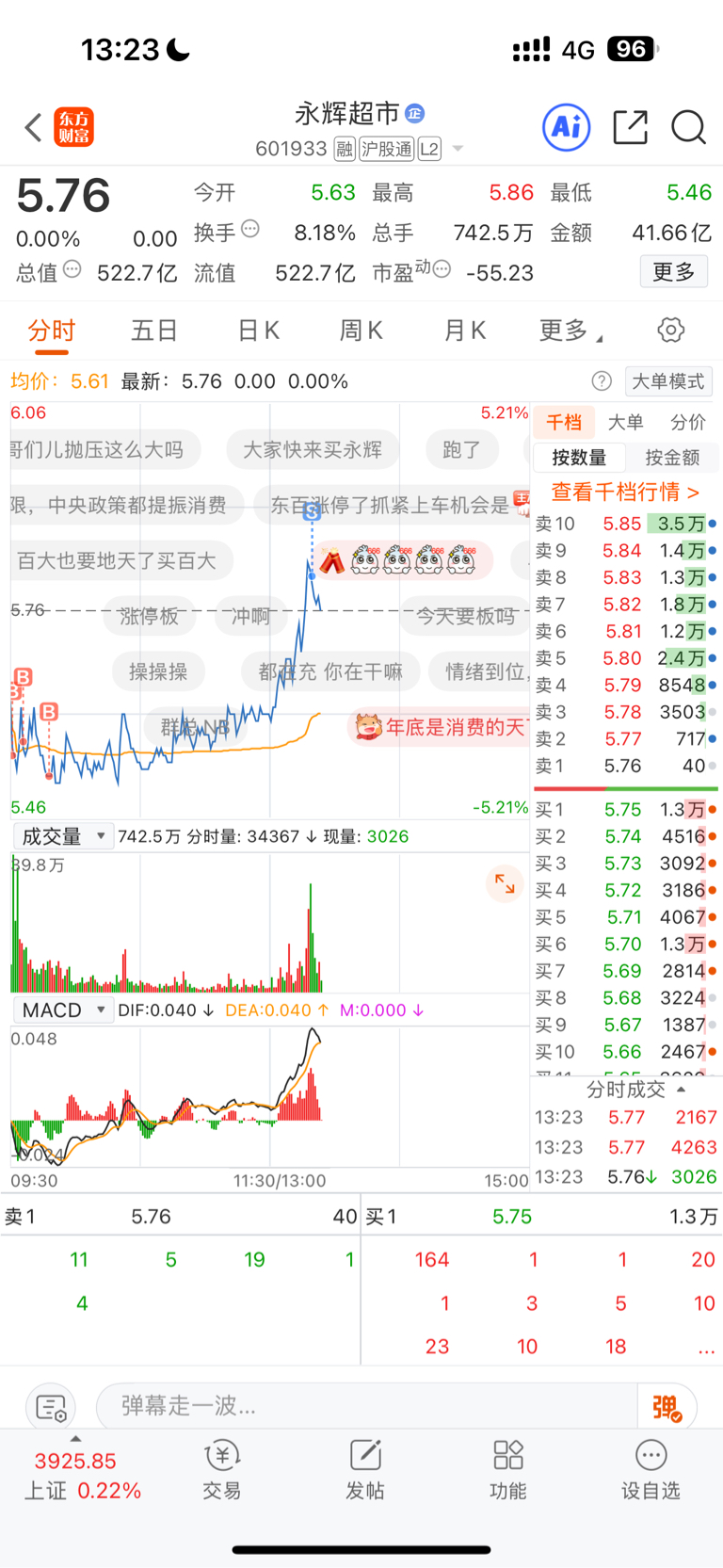 $永辉超市(SH601933)$ 天天做T 就是不给你大阳线
