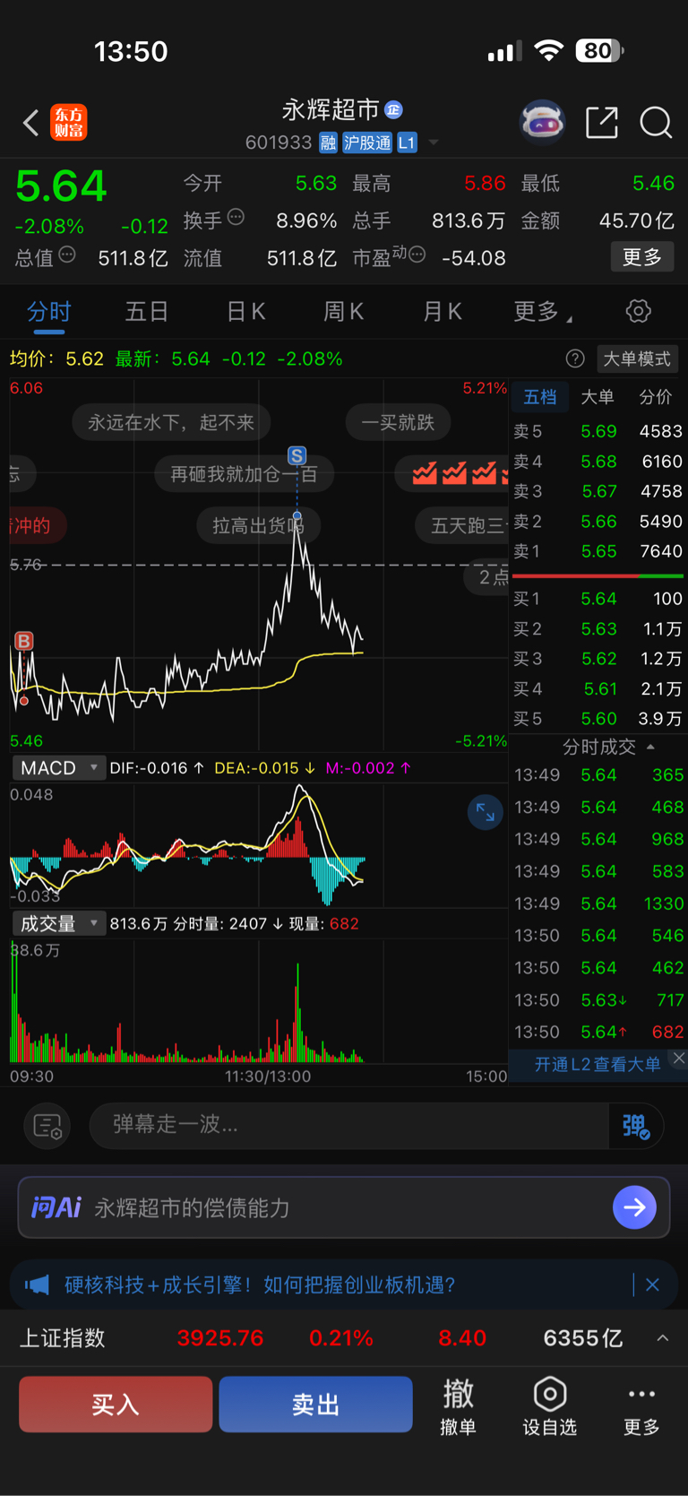 $永辉超市(SH601933)$ 每天T一下、爱咋咋地