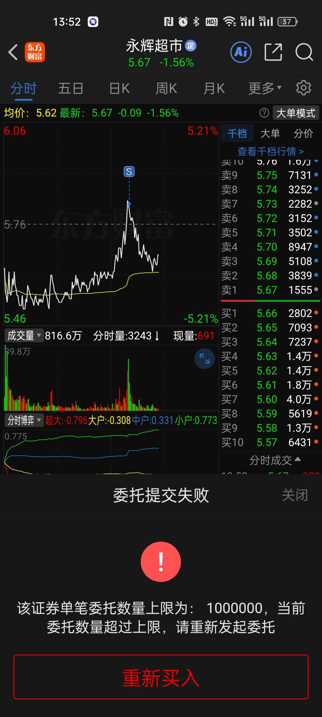 $永辉超市(SH601933)$ 想一次买个8万手还买不了