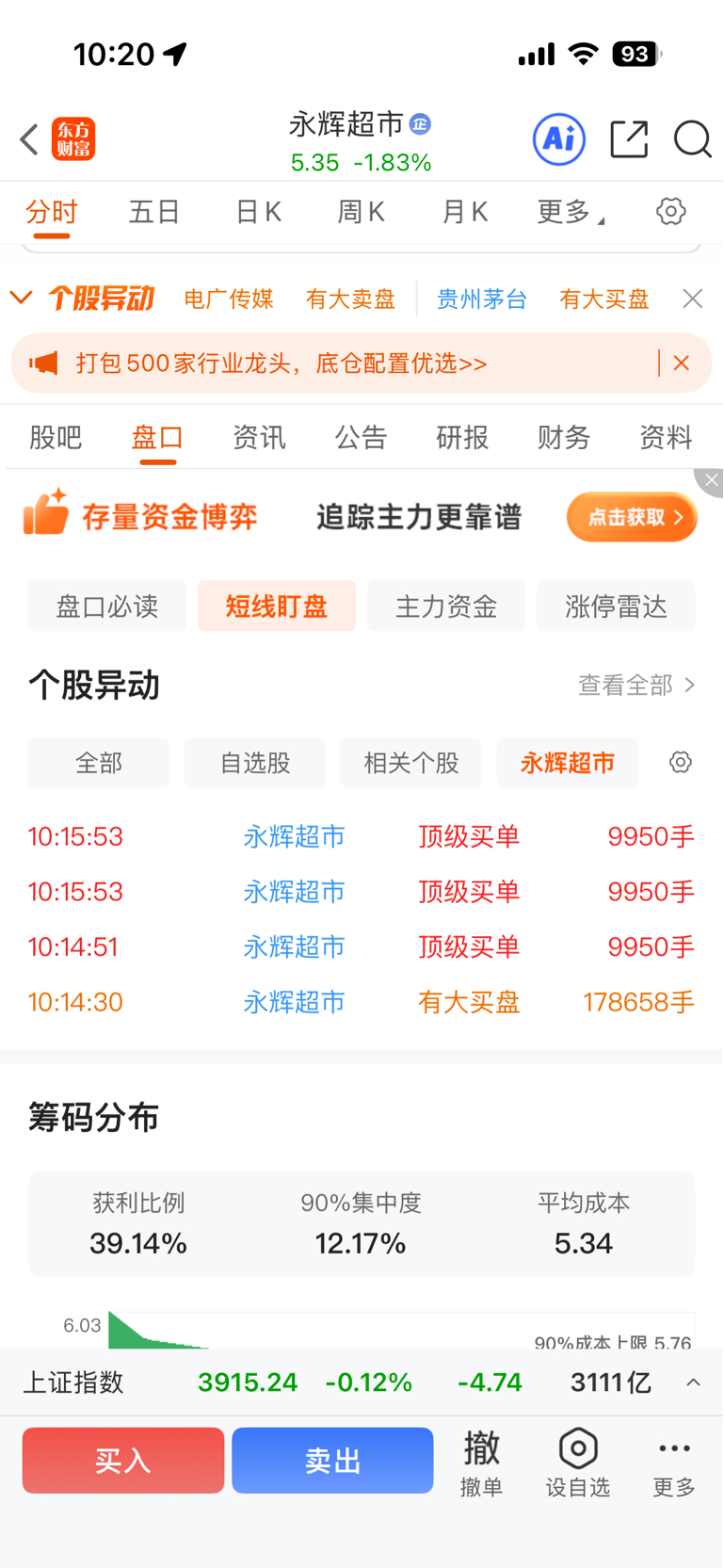 $永辉超市(SH601933)$ 谁能告诉我这是成交没