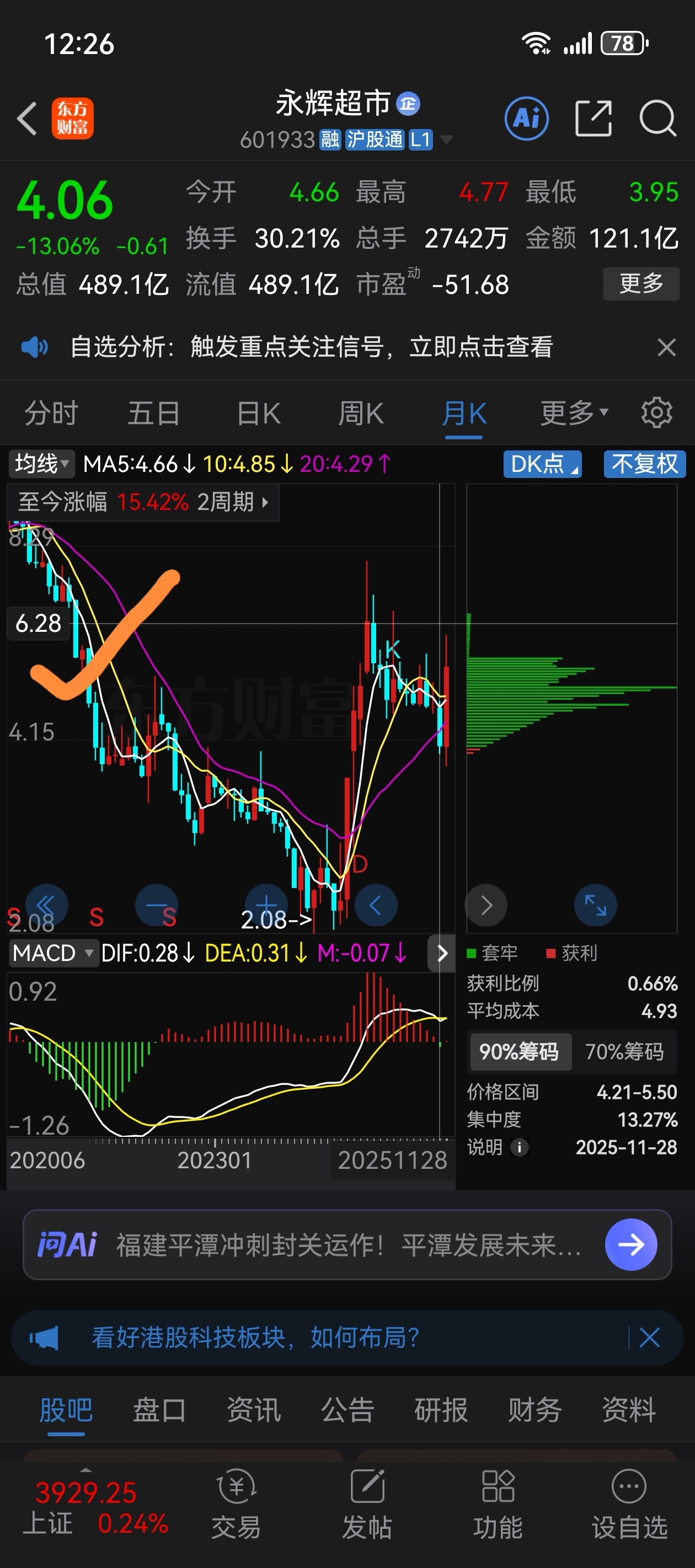$永辉超市(SH601933)$ 这个价格应该可以冲的过去吧。今年