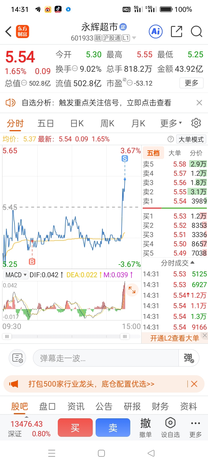 $永辉超市(SH601933)$ 高位了不要贪,有机会就做T轻仓玩玩即可