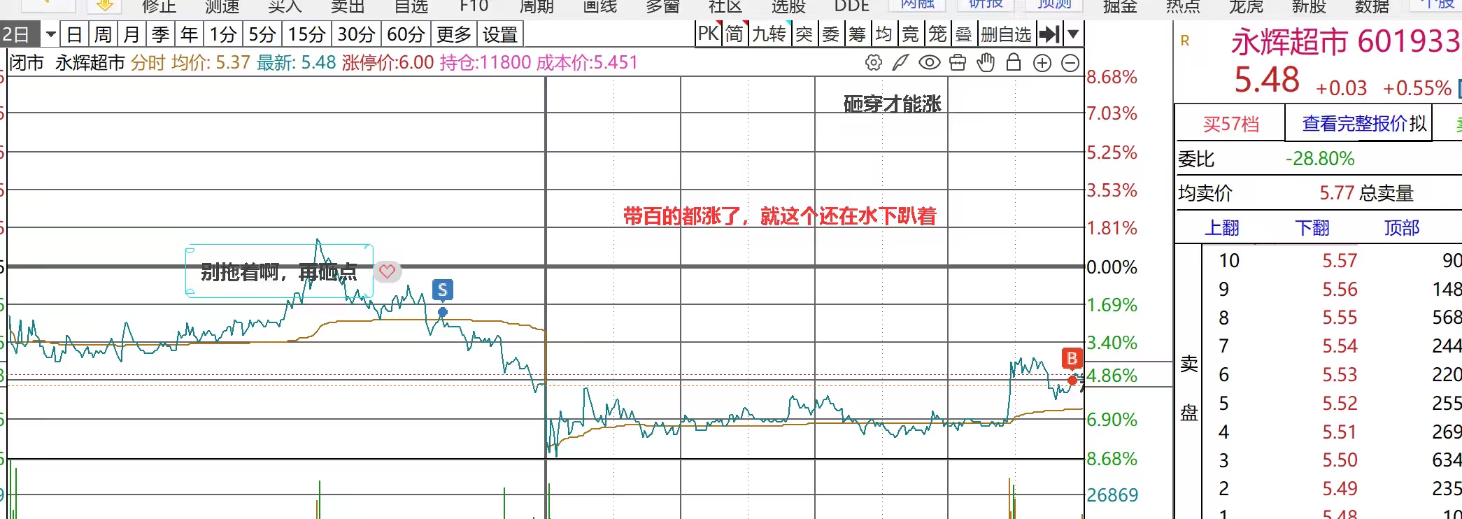 昨天出了今天看承接还行,尾盘买回来,都是小群概念股,凭什么东百能天天板,消费都弱了3天了,该轮动到消费了
