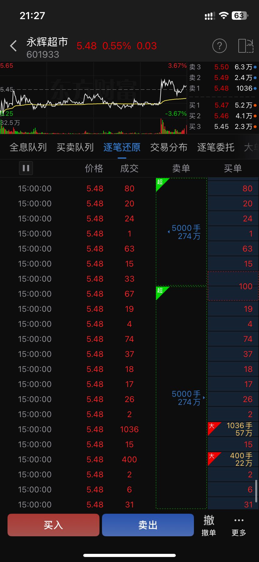 $永辉超市(SH601933)$ 有L2的数数有多少5000手超级卖单,尾盘小拉一波小散又兴奋了