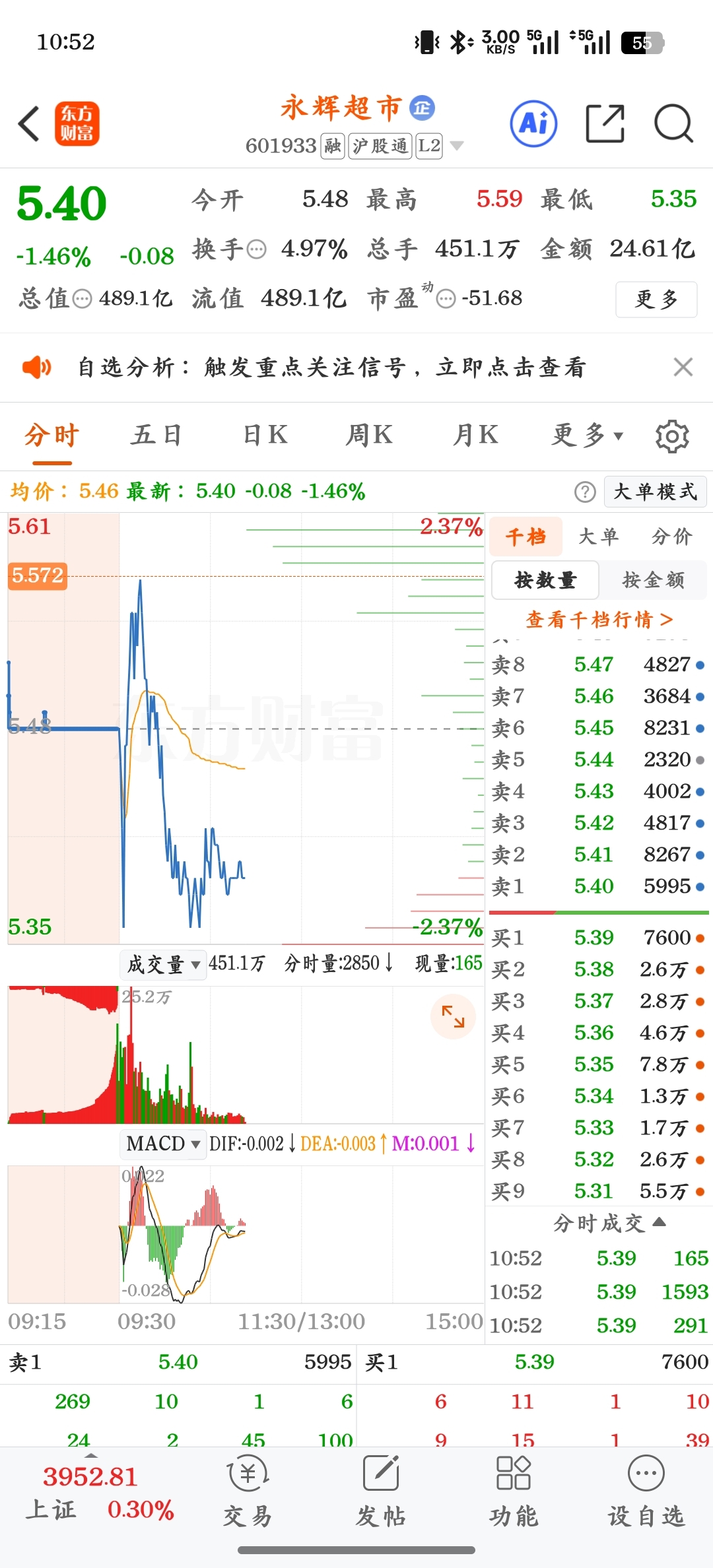 $永辉超市(SH601933)$ 上午就不能拉的比我成本价高一点让我跑路???我真要去超市捏方便面了