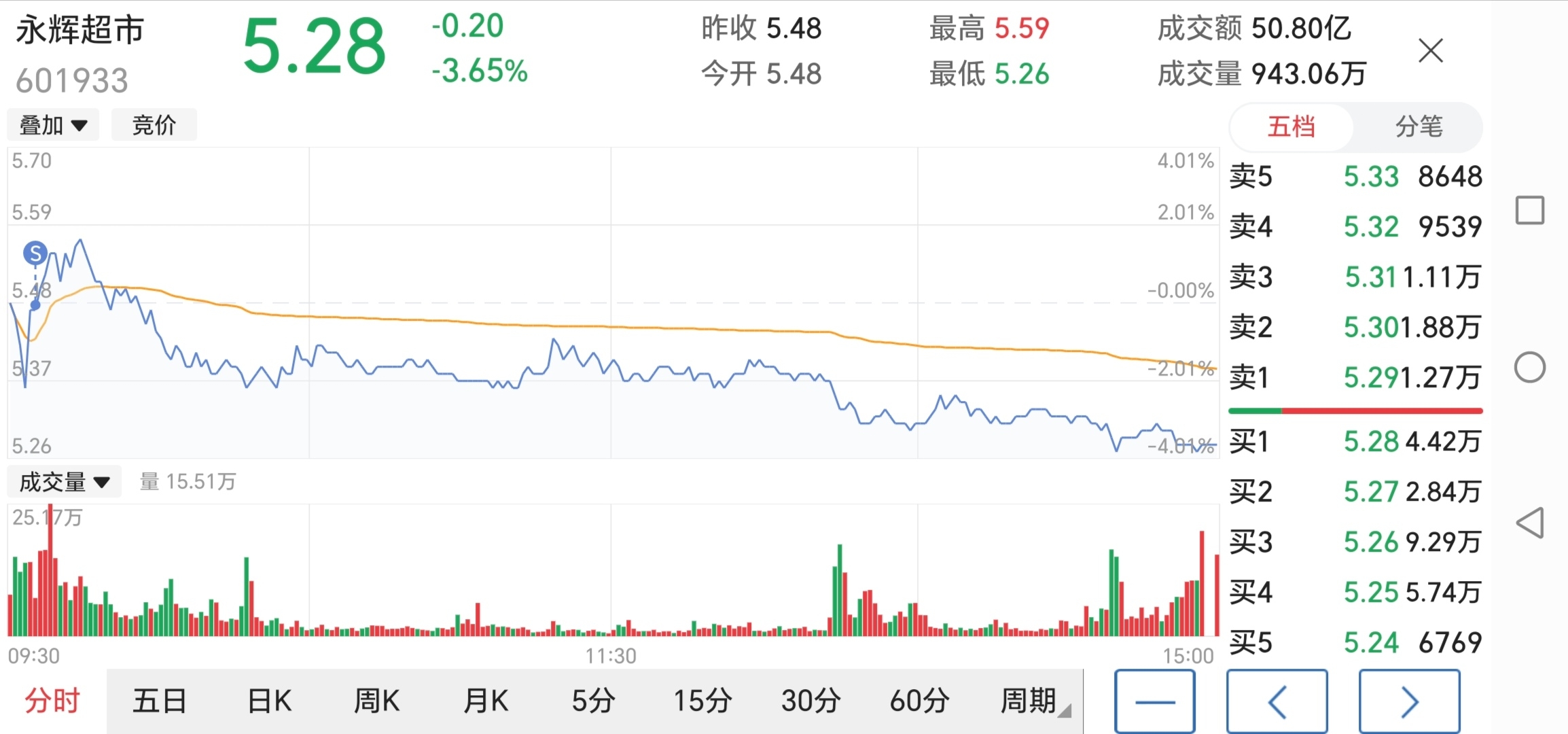 $永辉超市(SH601933)$ 那个男神是不是走了,今天的走势在一次证明,我还是韭菜