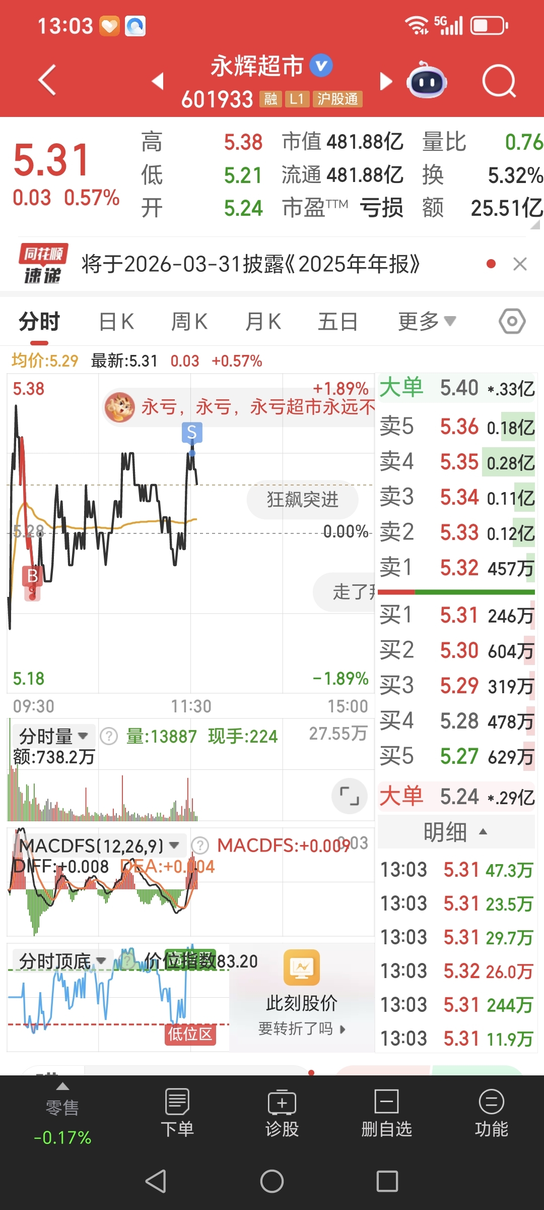 $永辉超市(SH601933)$ 做了个小T+0成功