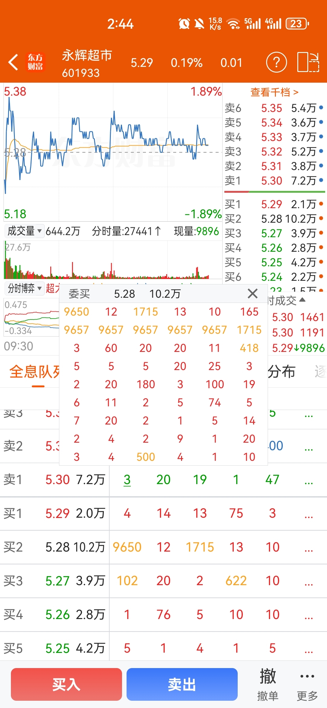 $永辉超市(SH601933)$ 这9657是谁啊,今天一直有主买的,庄家?