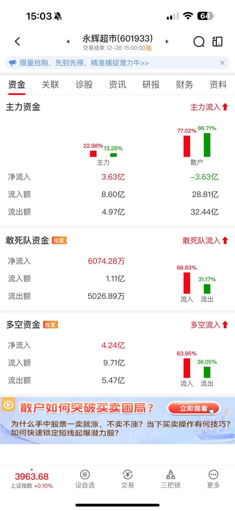 $永辉超市(SH601933)$ 参考下,资金是流入的,不知道没啥不涨!