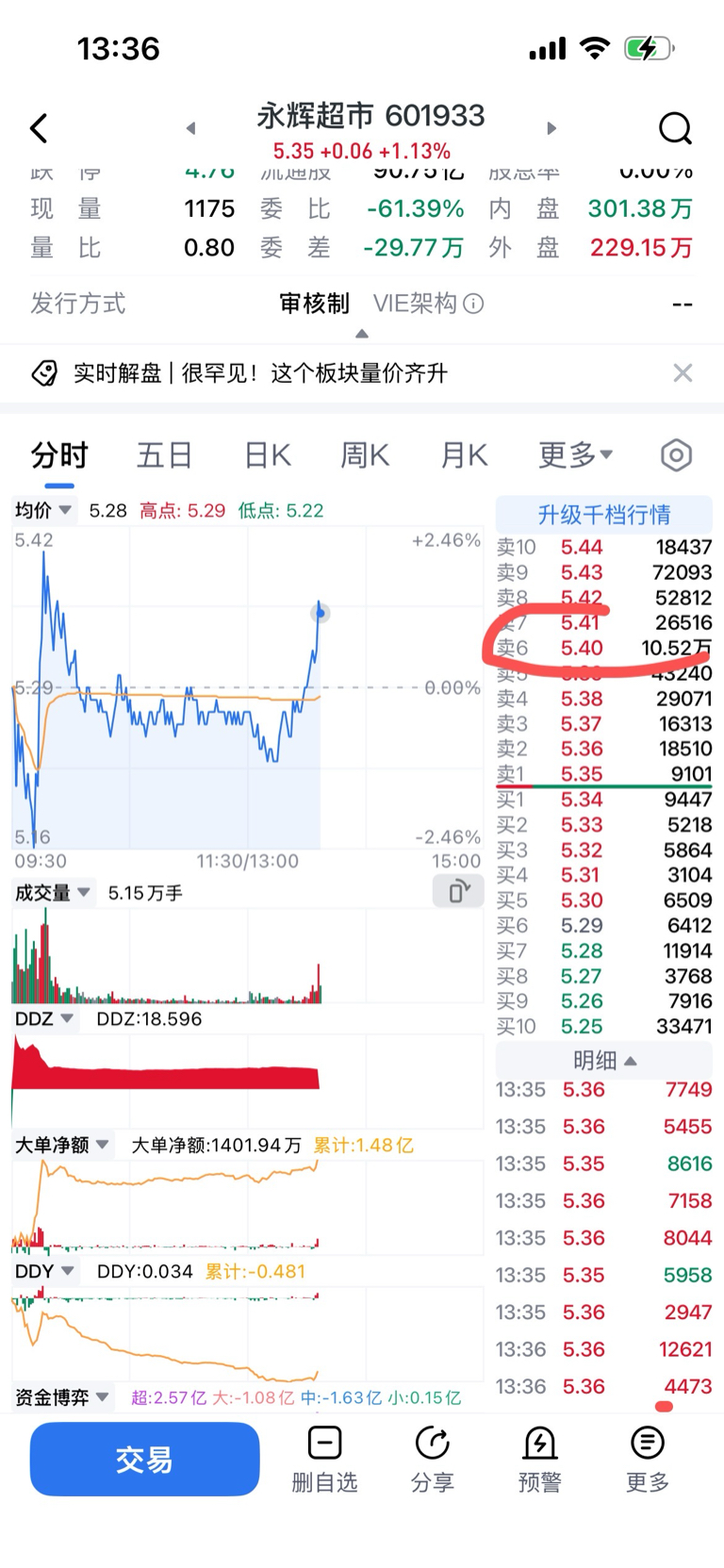 $永辉超市(SH601933)$ 呀,十万手压单,这么不想涨么