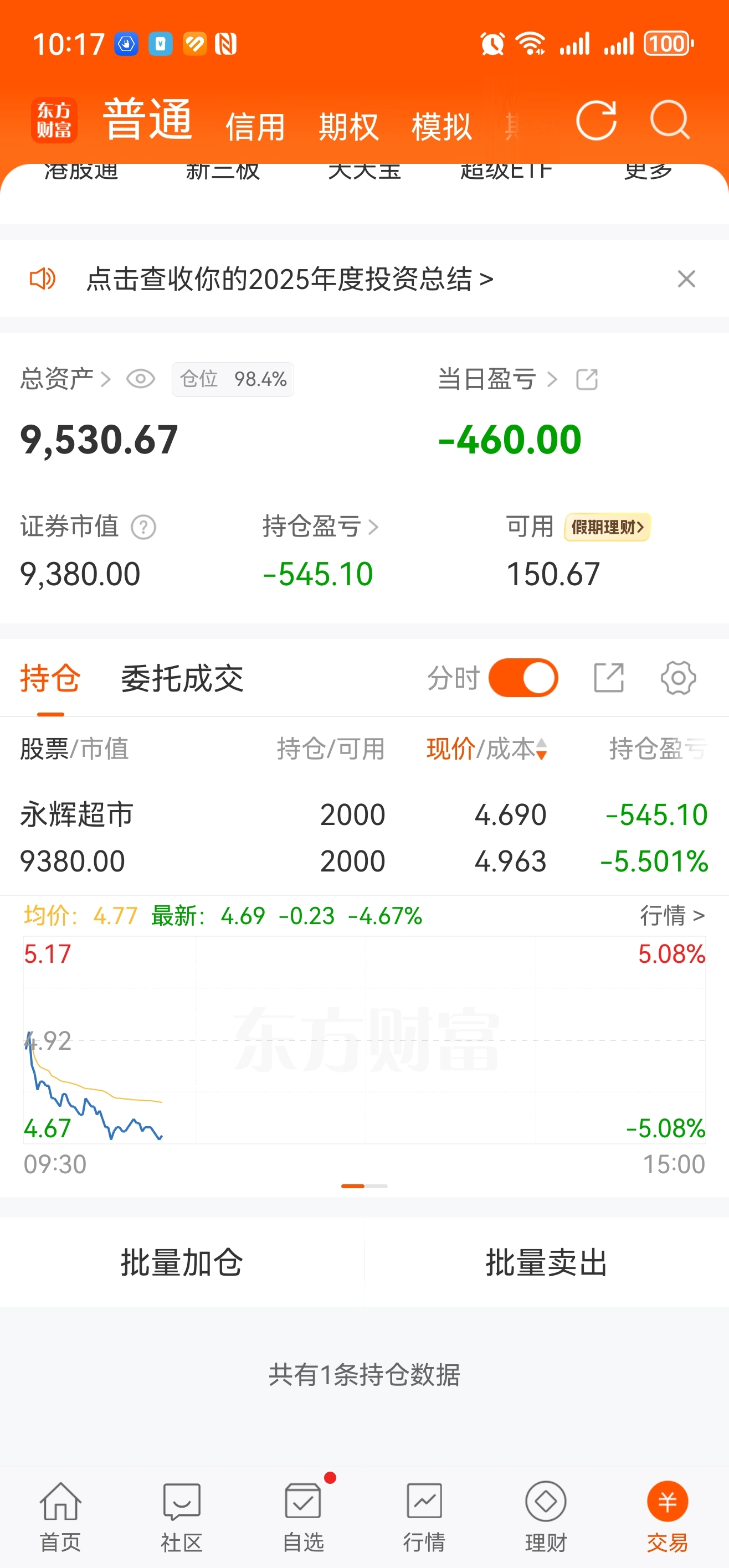 $永辉超市(SH601933)$ 昨天下午买了一万块钱,到现在都能亏500多,厉害了