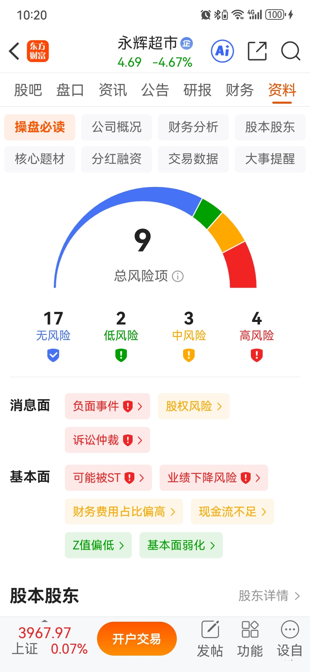$永辉超市(SH601933)$ 还得最少再跌三天,一堆的问题企业,业绩一路下滑快远离吧!