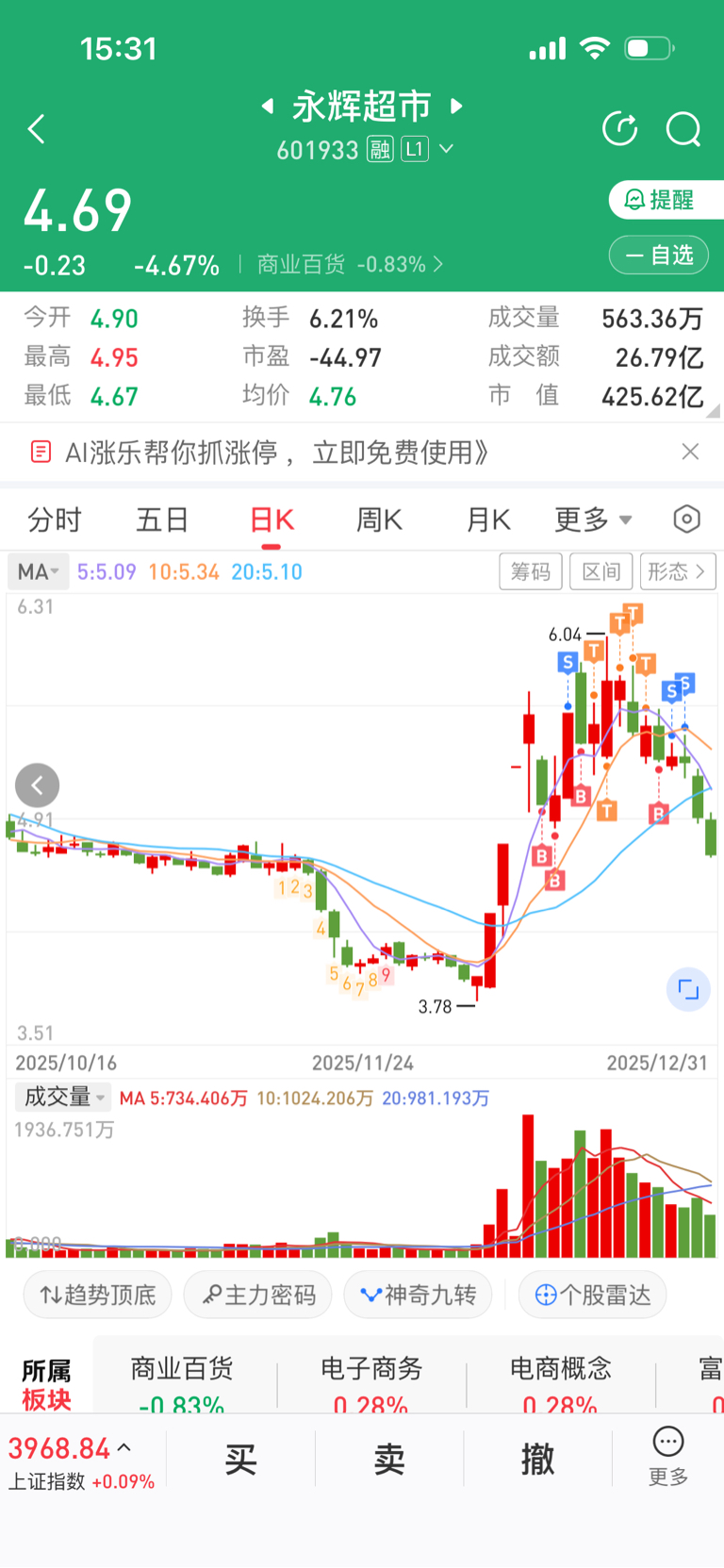 $永辉超市(SH601933)$ 从赚15个点,到最后微赚跑路,不跑的话,现在多亏十几个点!烂泥扶不上墙