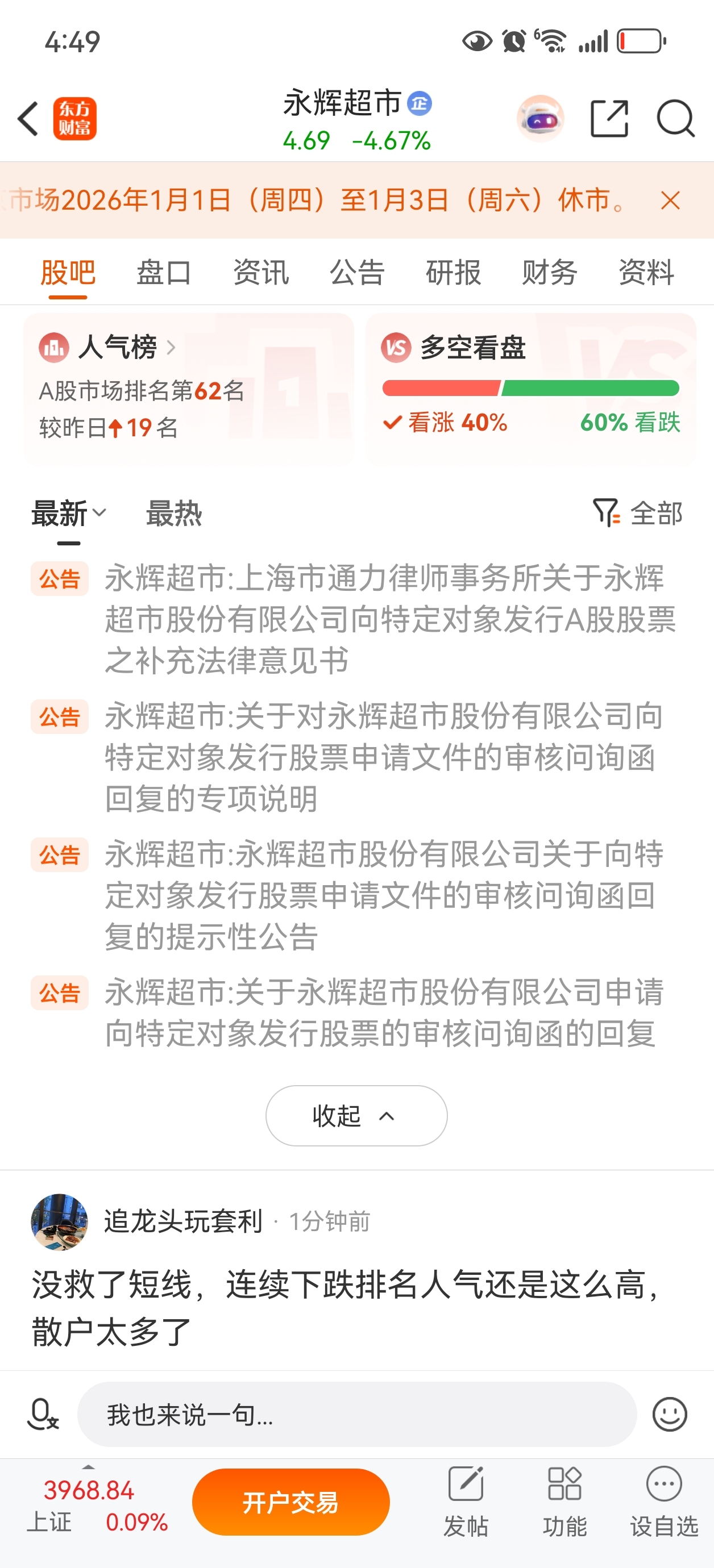 温馨提示: 1.根据《证券法》规定,禁止编造、传播虚假信息或者误导性信息,扰乱证券市场;2.用户在本社区发表的所有资料、言论等仅代表个人观点,与本网站立场无关,不对您构成任何投资建议。用户应基于自己的独立判断,自行决定证券投资并承担相应风险。《东方财富社区管理规定》