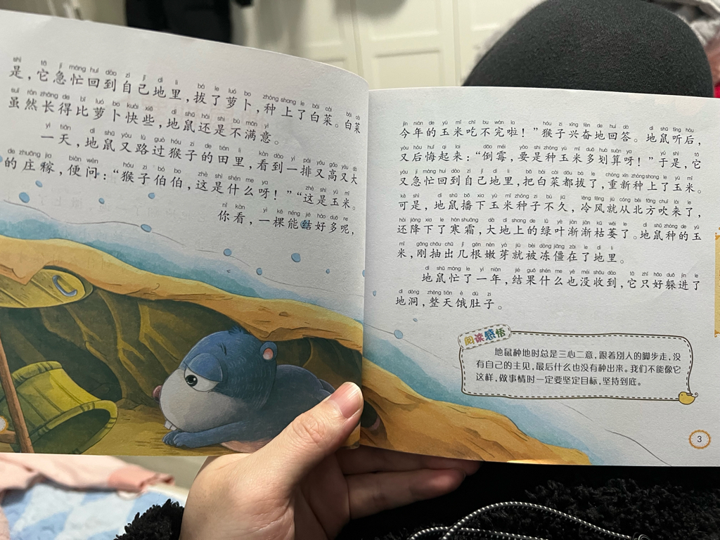 今晚给娃儿读故事,这个深有感触,我今年入市就是这个地鼠,买入这个票的时候发现那个票涨的好割了买,买入那个票的时候发现其他票涨的好割了买,买入其他票发现另一个票涨的好割了买,最后什么都没有得到,还亏了时间和金钱,没有主见,儿童故事这么简单的道理,我还是没有悟。