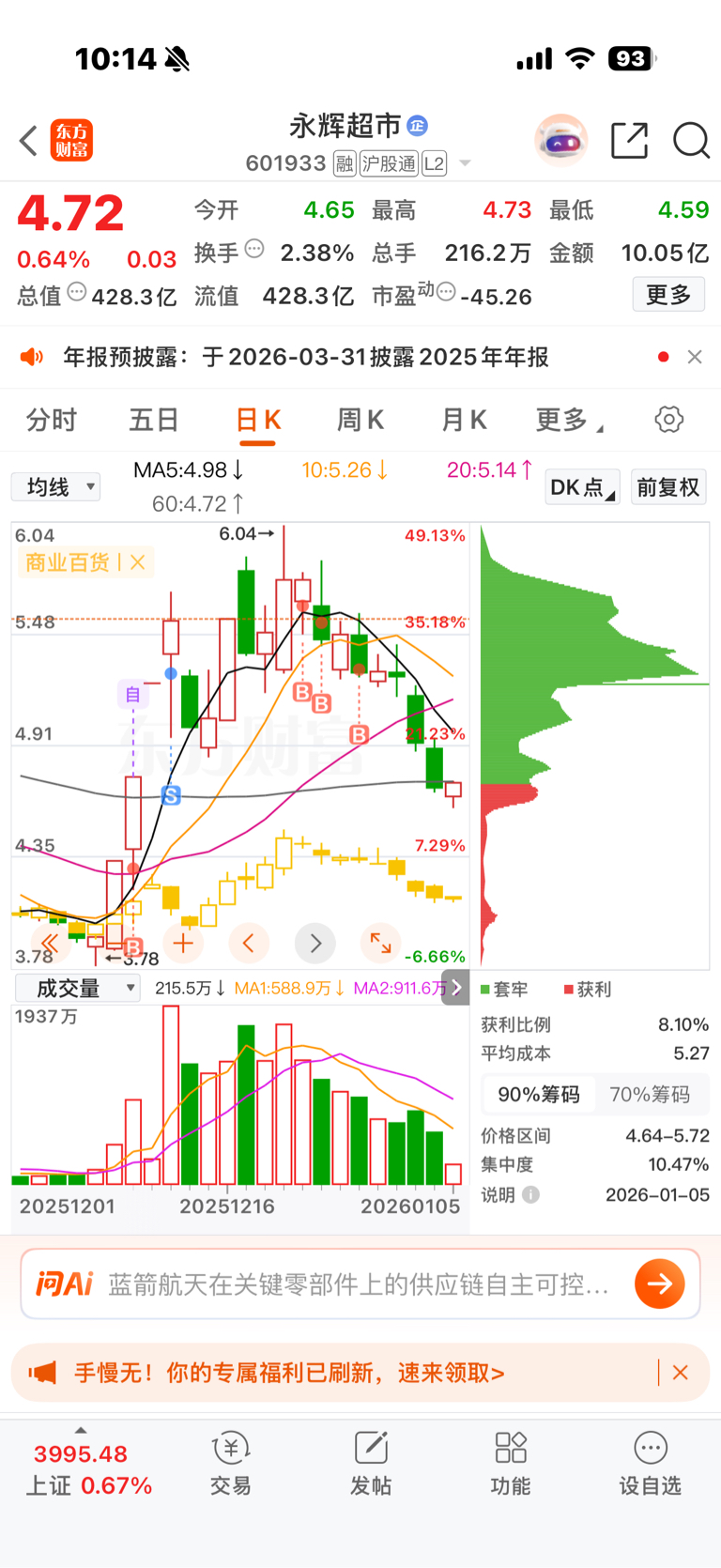 $永辉超市(SH601933)$ 一股不卖