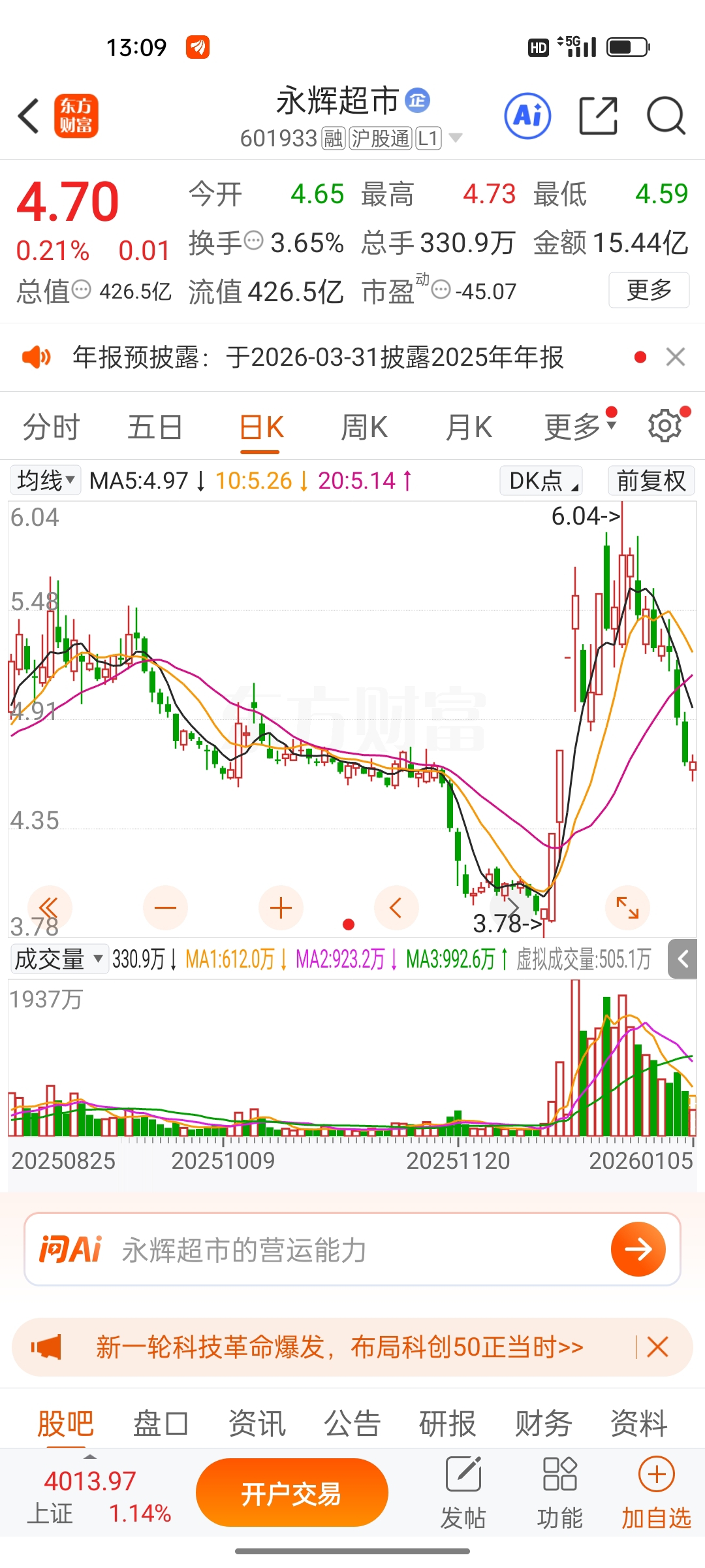 $永辉超市(SH601933)$ 逢低关注