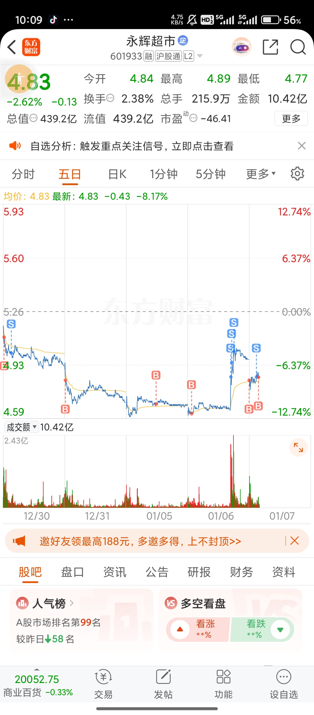 $永辉超市(SH601933)$ 这个位置看不太准,轻仓试着慢慢接回来吧。