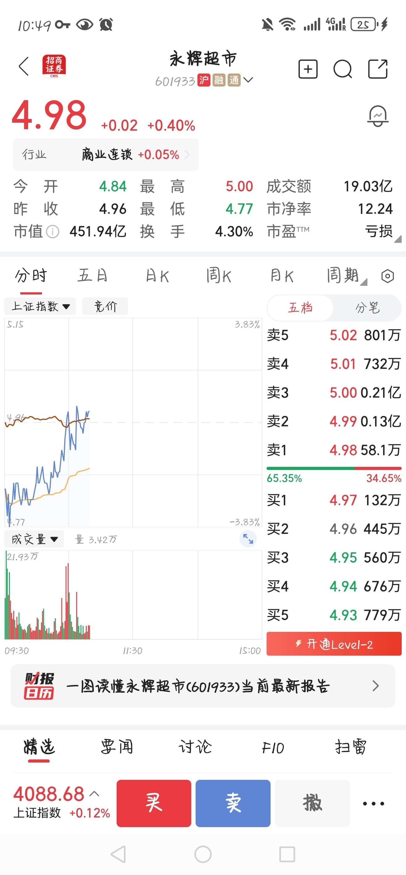 $永辉超市(SH601933)$ 昨天4.63进的,这个位置上面这么大的压单,全是庄家自己的,等下就全部吃完,冲高一波,赚个七八个点就卖了,感谢主力#炒股日记#