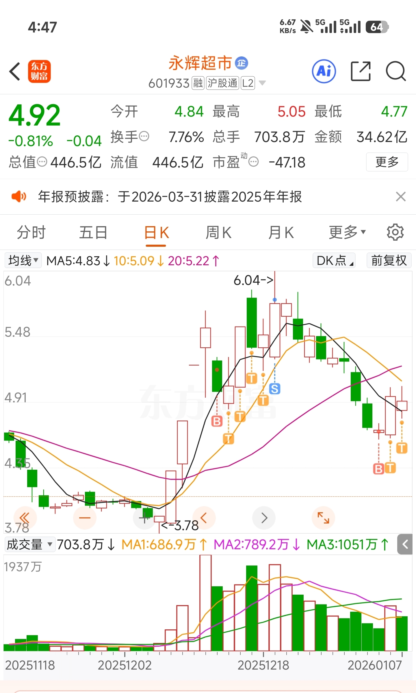 $永辉超市(SH601933)$ 等春节消费行情到来前,每天做T就好,水下买入,拉高卖出,大家一起T啊