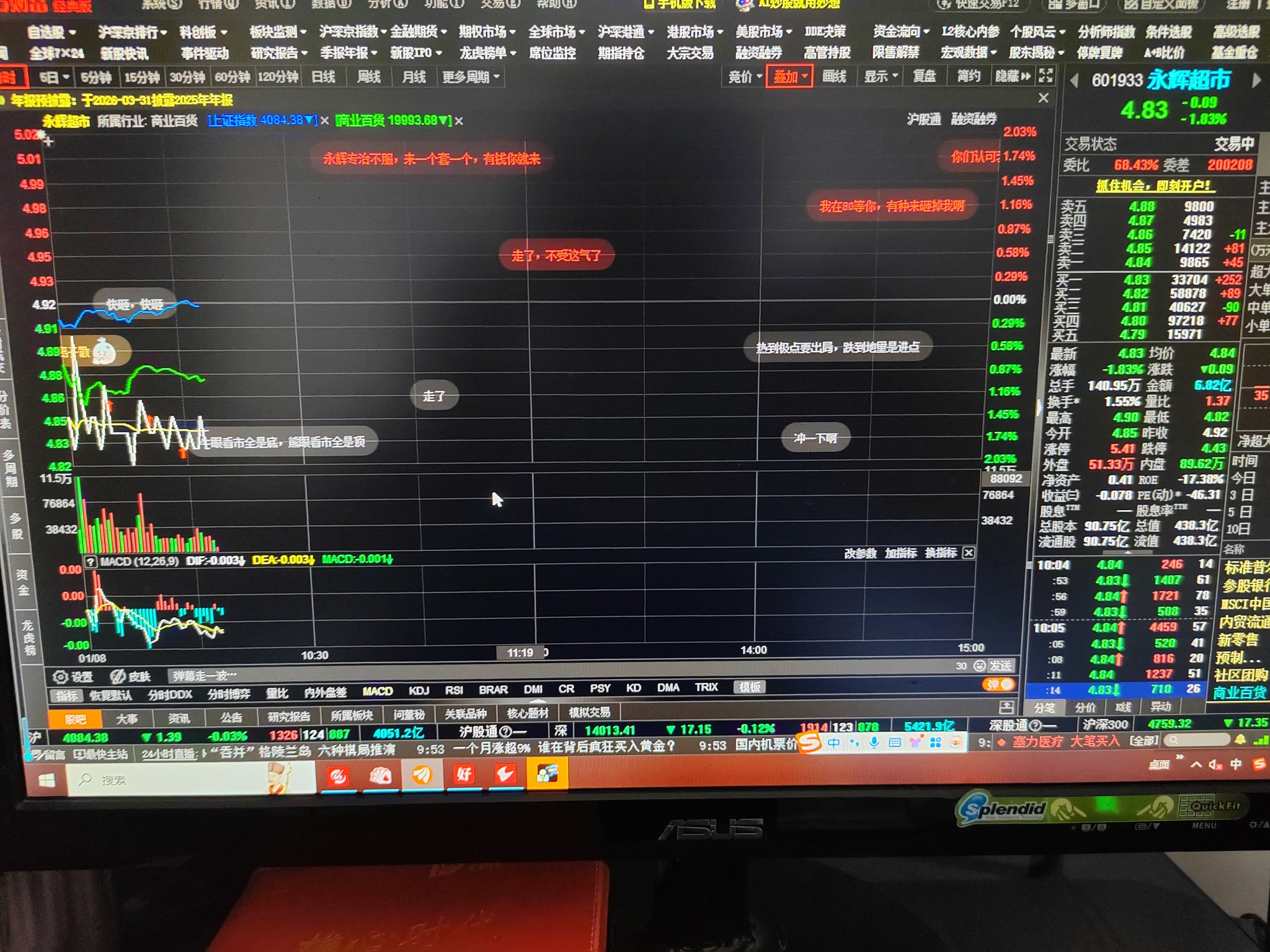 三个时间点,2高一低跌破均价线。说明今天贴情强势震荡阶段,这种时候就不要盲目操作