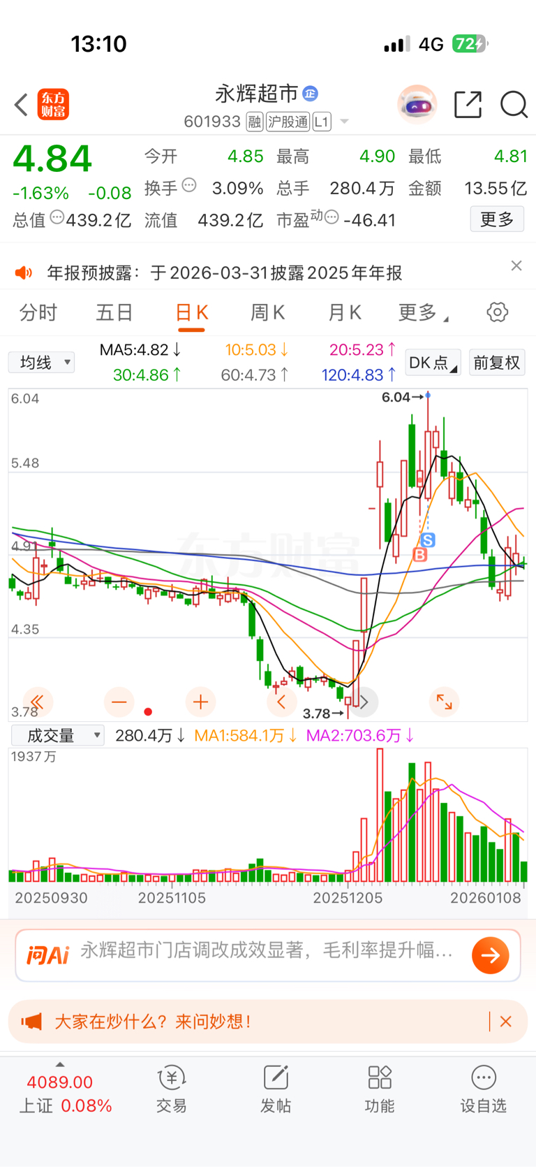 $永辉超市(SH601933)$ 还好高位跑了,在里面的兄弟还好不