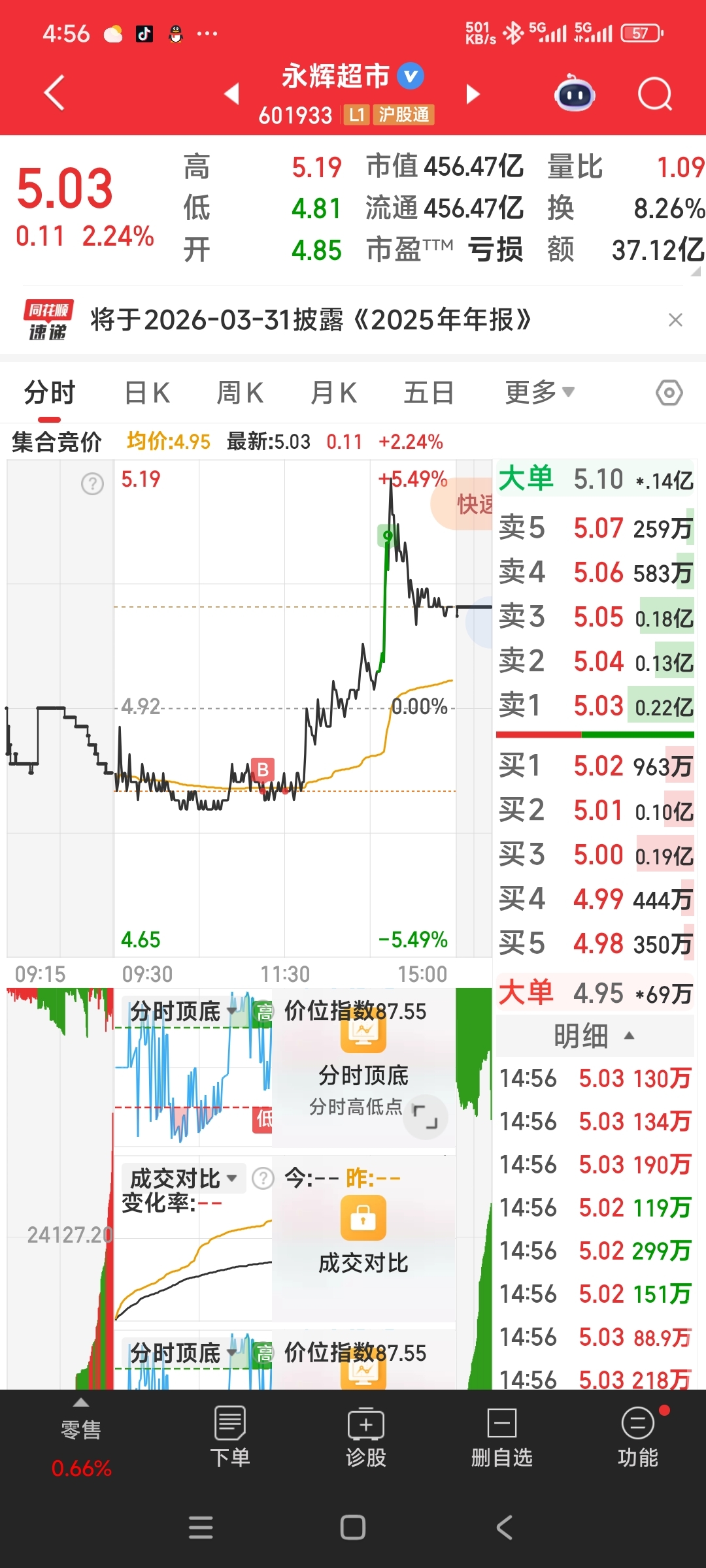 $永辉超市(SH601933)$ 听说主力能收割我?明天直接砸哈我好补仓