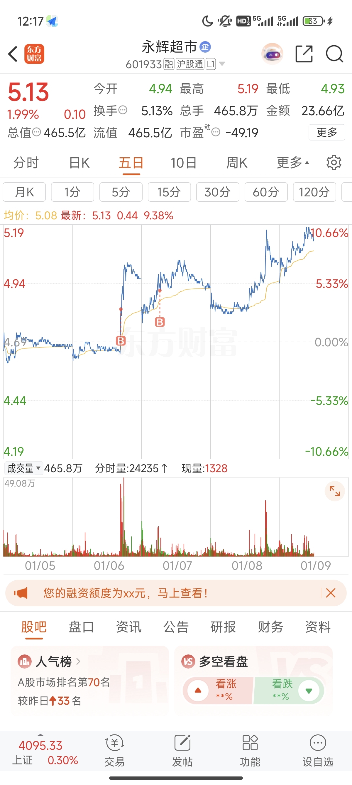 $永辉超市(SH601933)$ 等根阳线穿上轨 目标价5.9