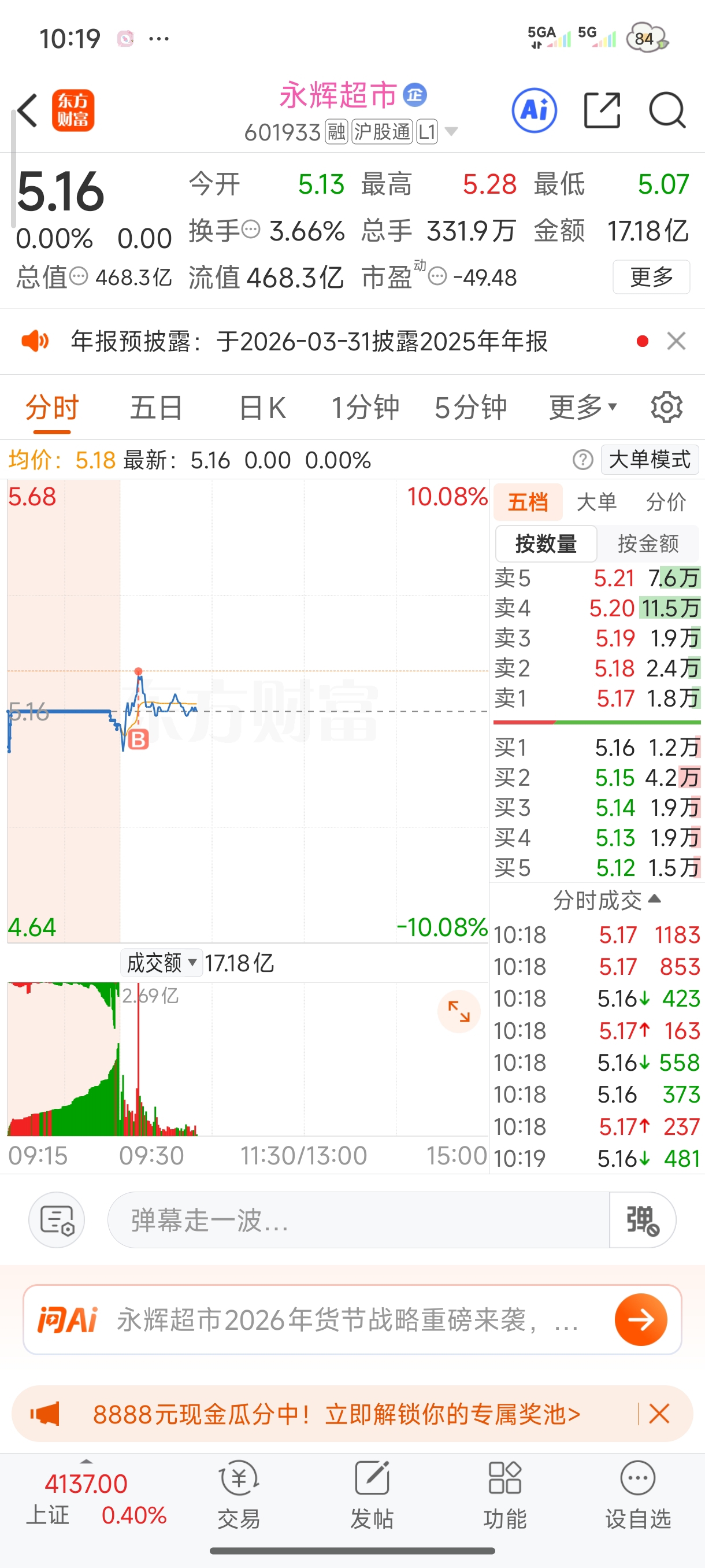 $永辉超市(SH601933)$ 对不起兄弟们是我买崩了