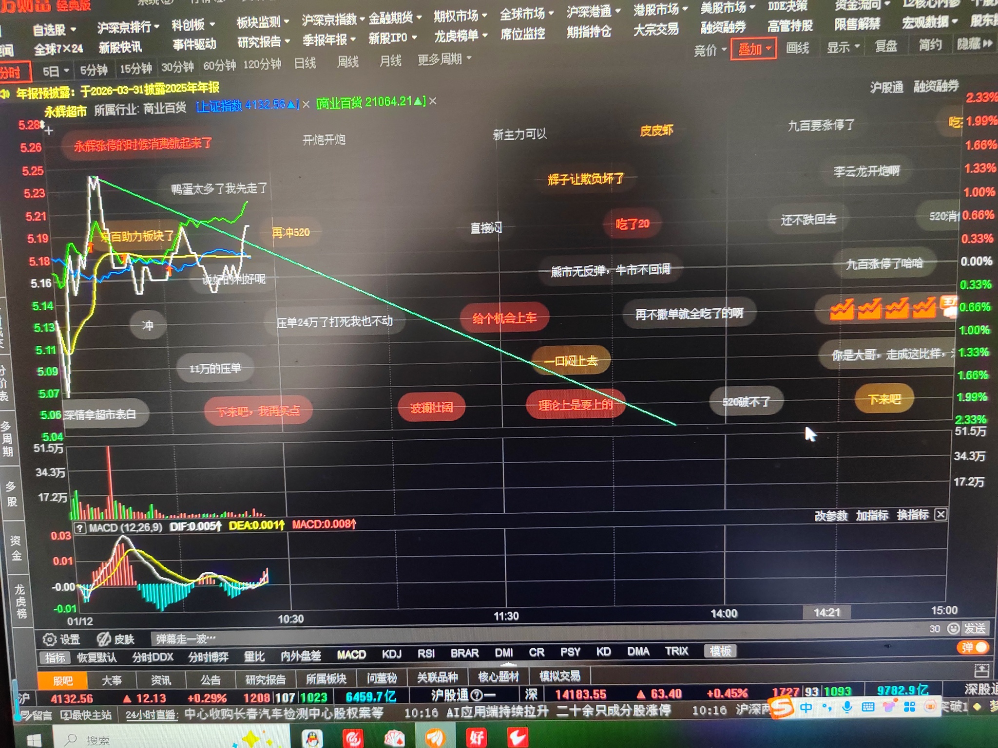 $永辉超市(SH601933)$ 突破下跌趋势,在突破前高,上午可看,重点看下午能不能出现高9或突破高9