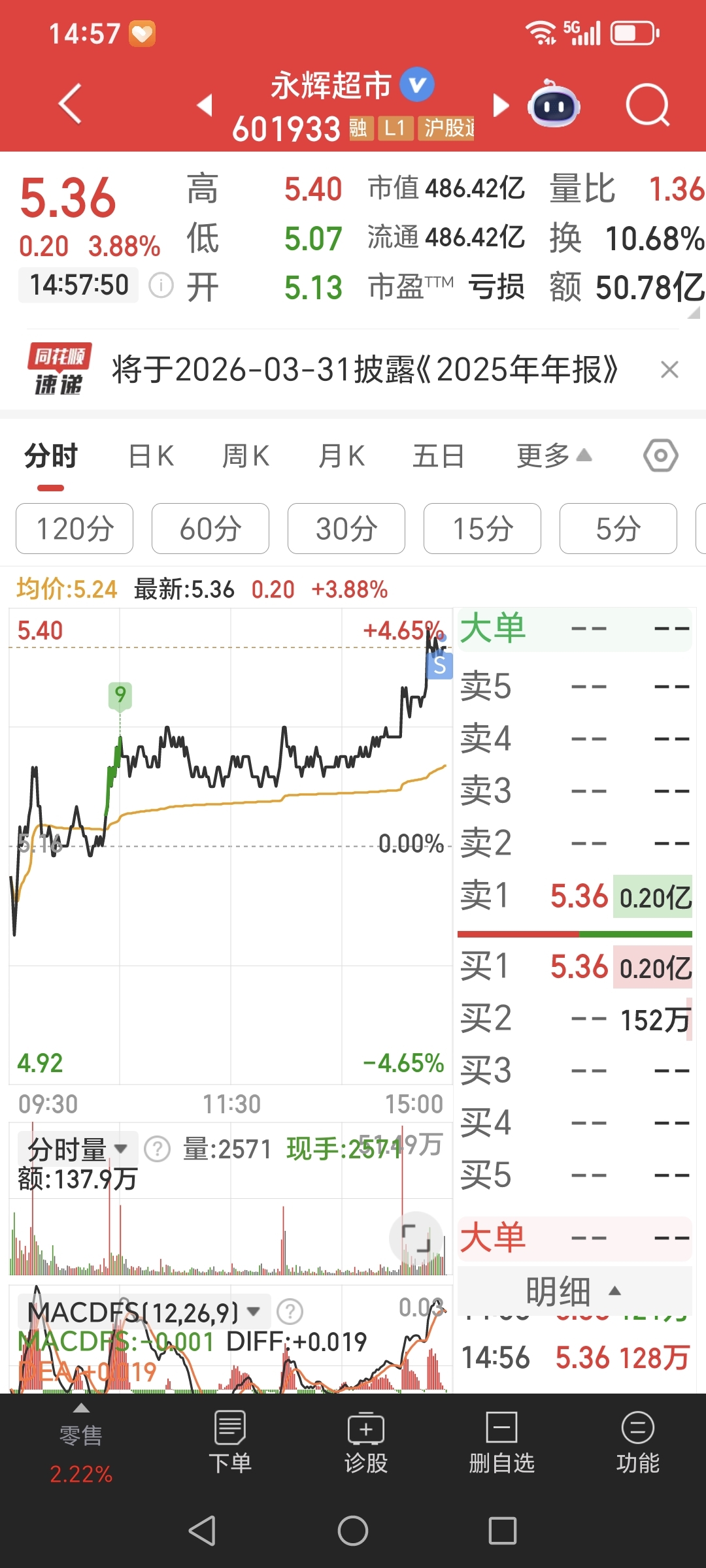 $永辉超市(SH601933)$ 5.37清仓了,