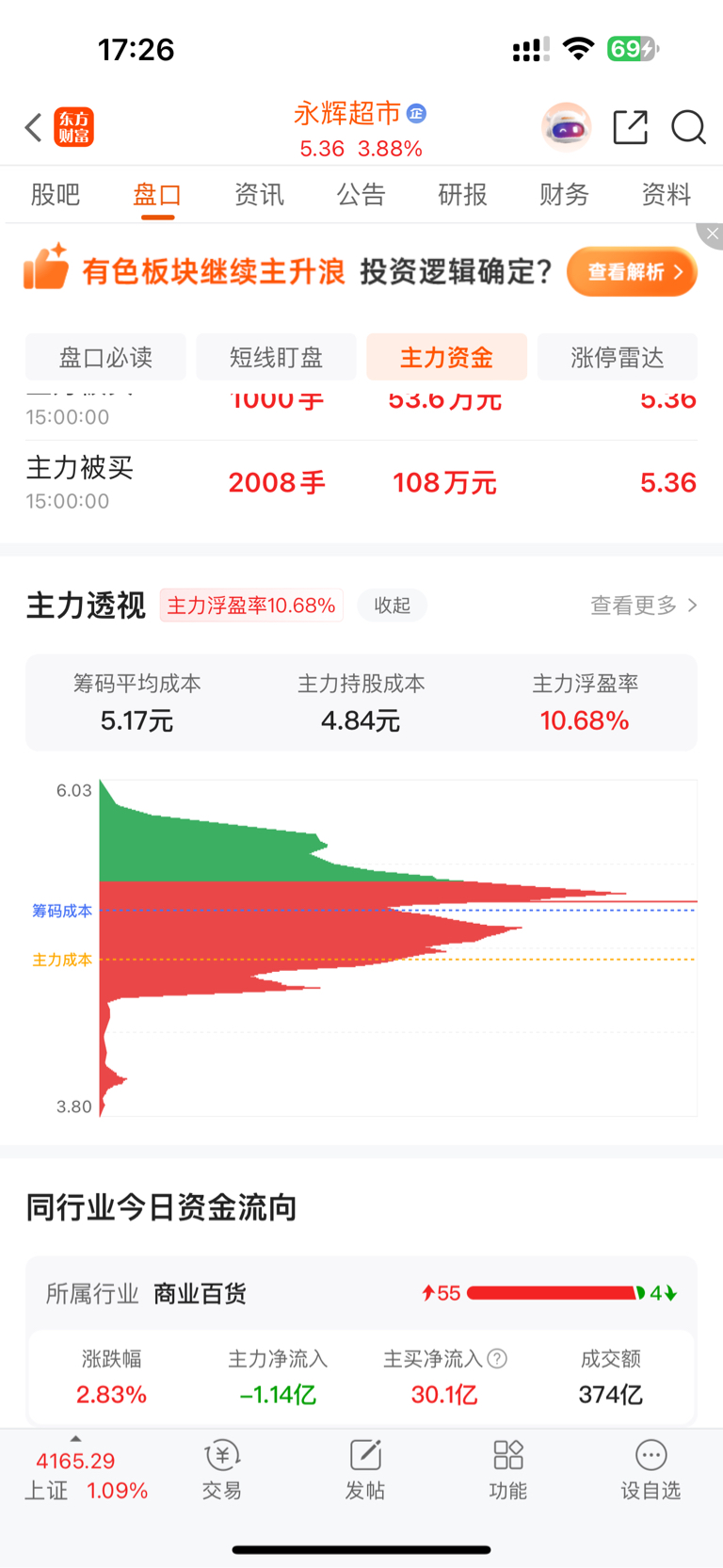 $永辉超市(SH601933)$ 4.84是主力成本吗