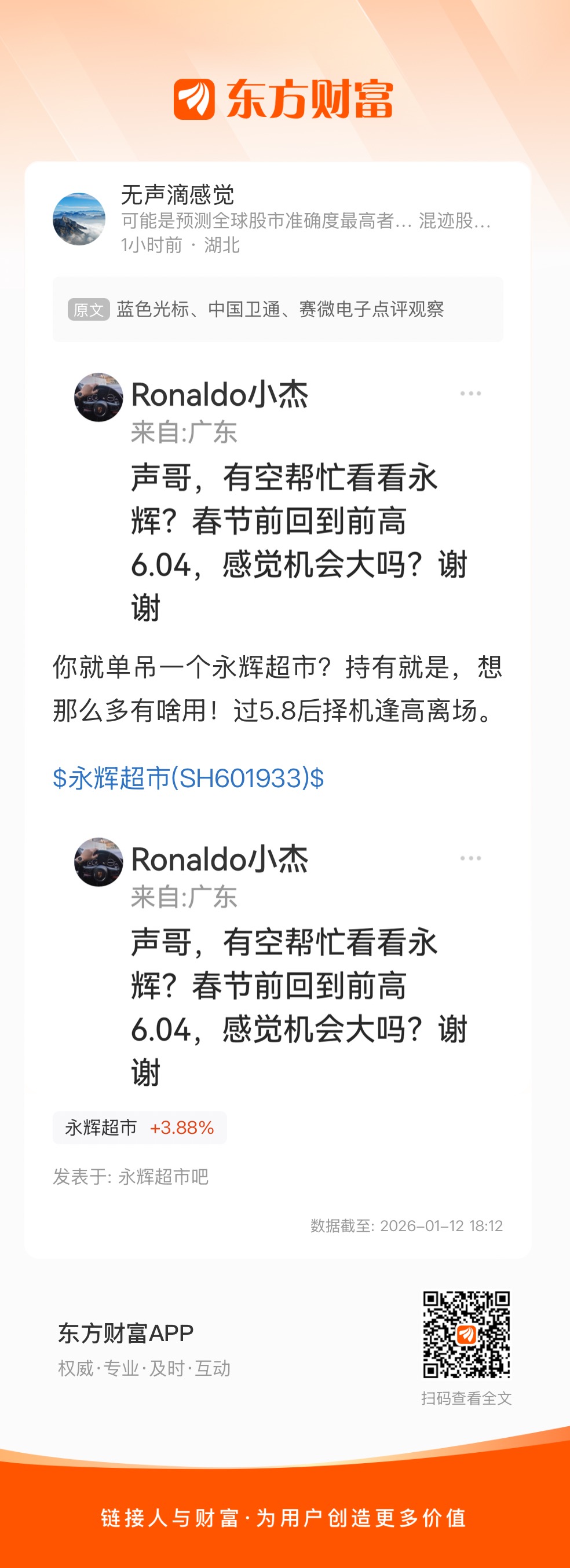 温馨提示: 1.根据《证券法》规定,禁止编造、传播虚假信息或者误导性信息,扰乱证券市场;2.用户在本社区发表的所有资料、言论等仅代表个人观点,与本网站立场无关,不对您构成任何投资建议。用户应基于自己的独立判断,自行决定证券投资并承担相应风险。《东方财富社区管理规定》