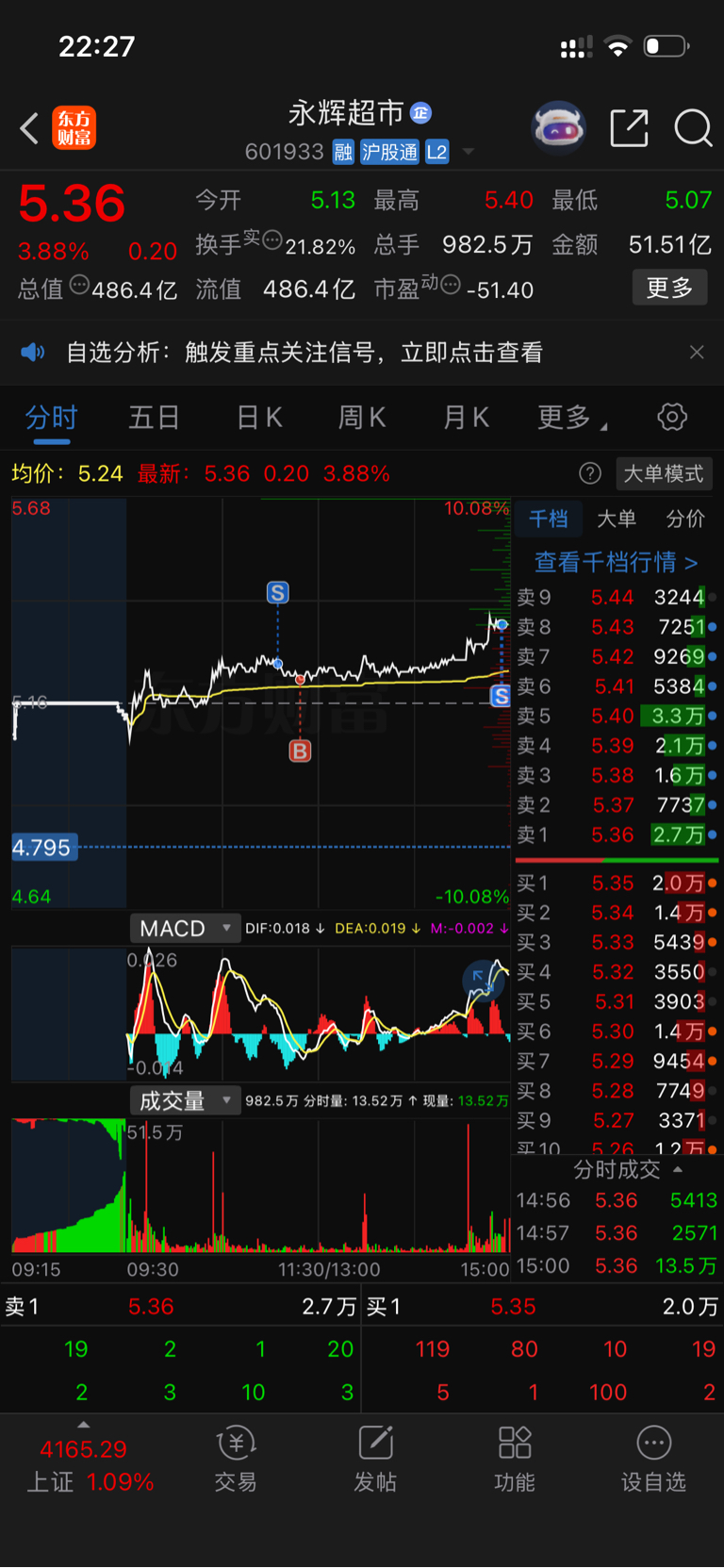 $永辉超市(SH601933)$  今天T了一半出来,明天低开就吸,高开就追