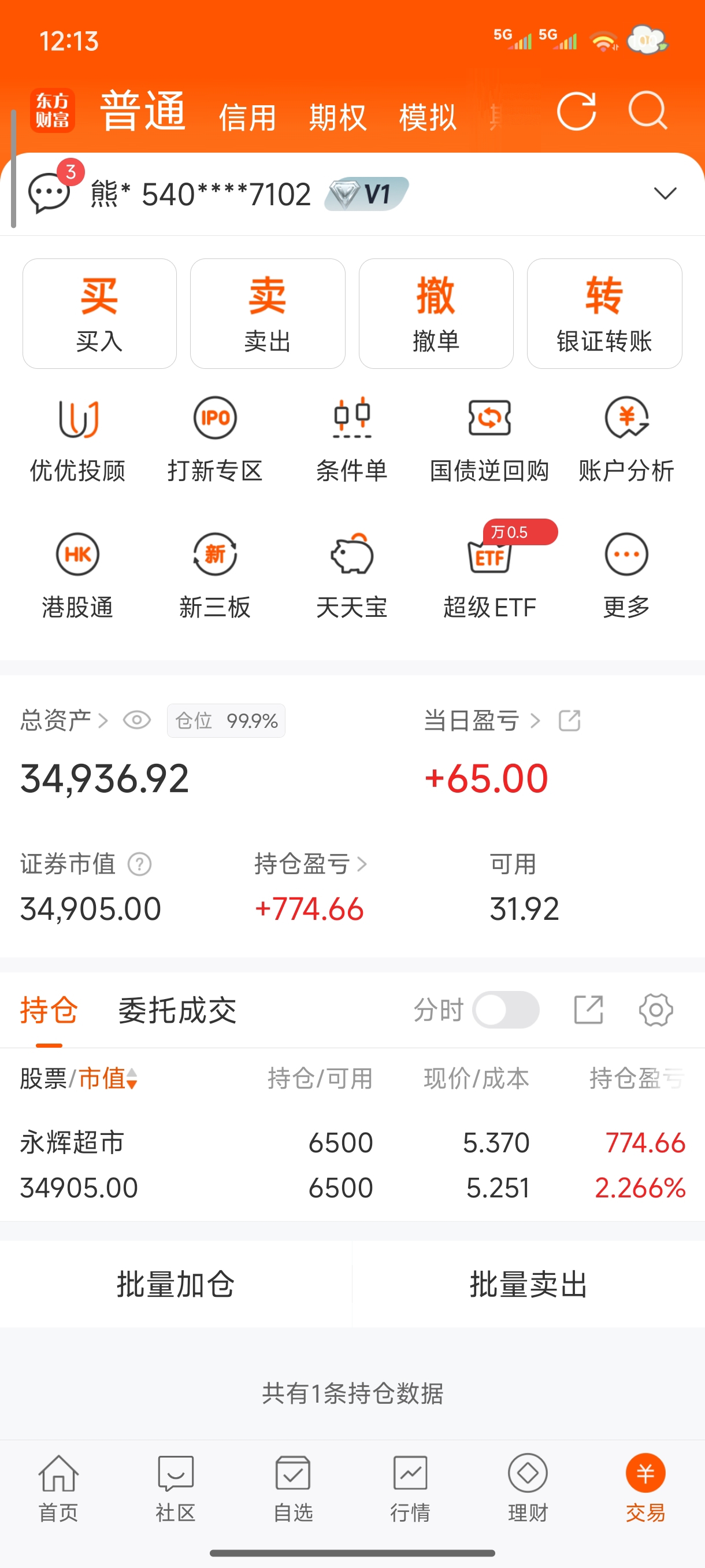 实盘日记-15今天早盘大盘下跌极速拉升,永辉极速拉升然后下跌,没卖出去,自己的问