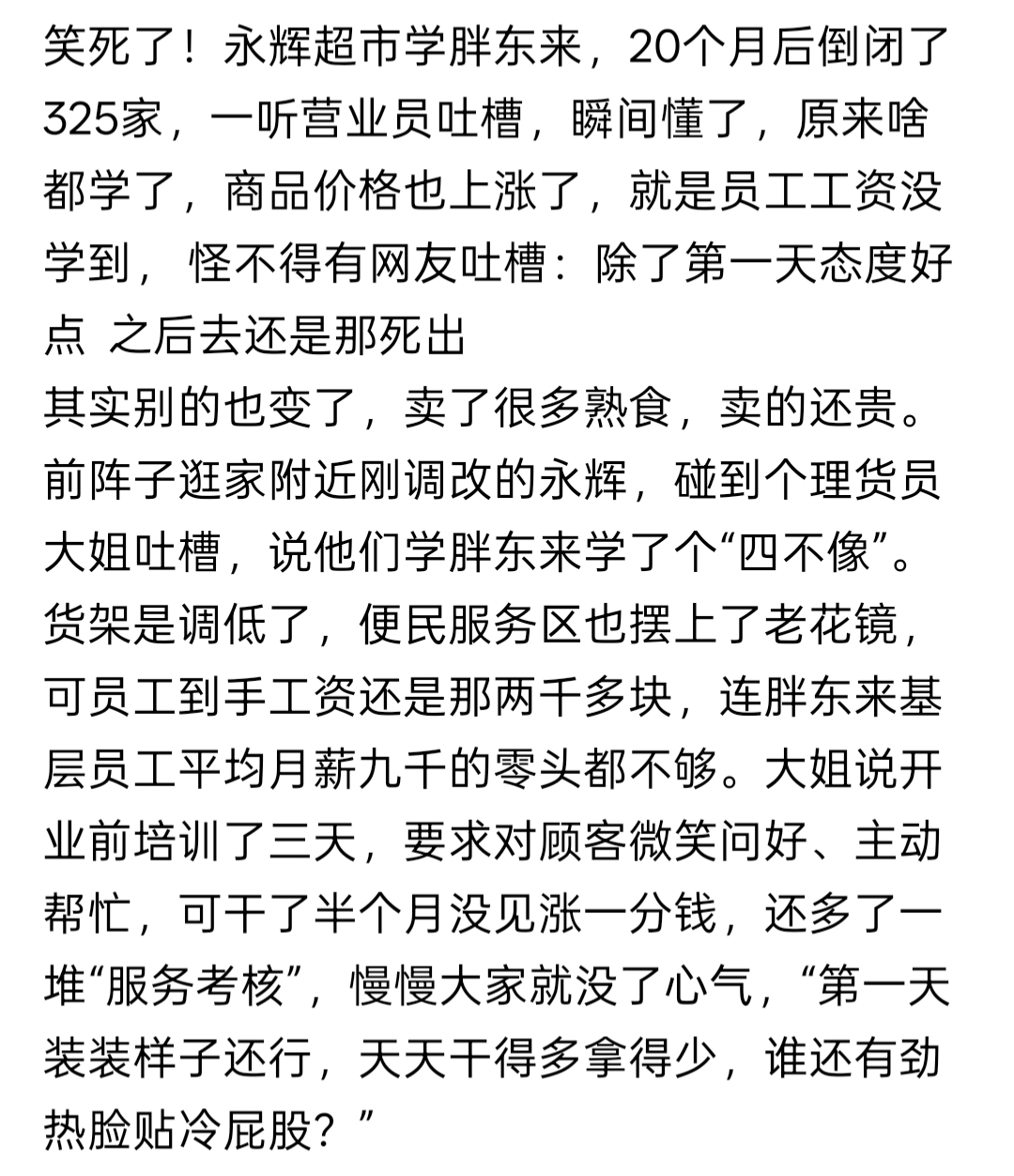$永辉超市(SH601933)$ 谁在永辉干过,他说的是不是真的?