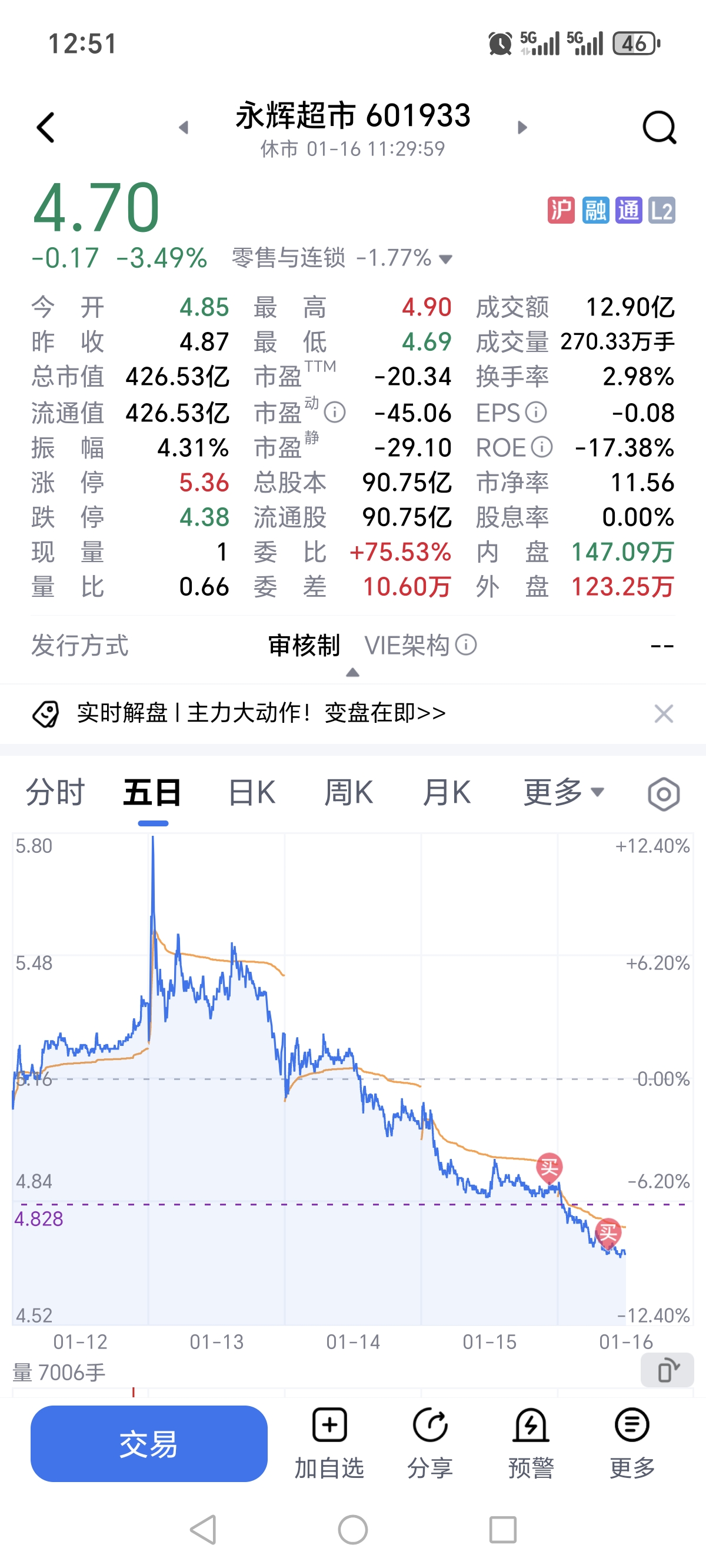 昨天也买的,今天又补了,补到4.82了,能回本吗,