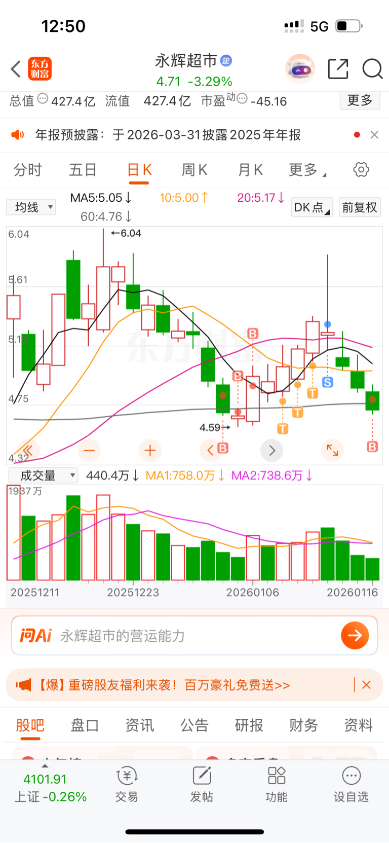 $永辉超市(SH601933)$ 过年了,应该涨点买年货吧