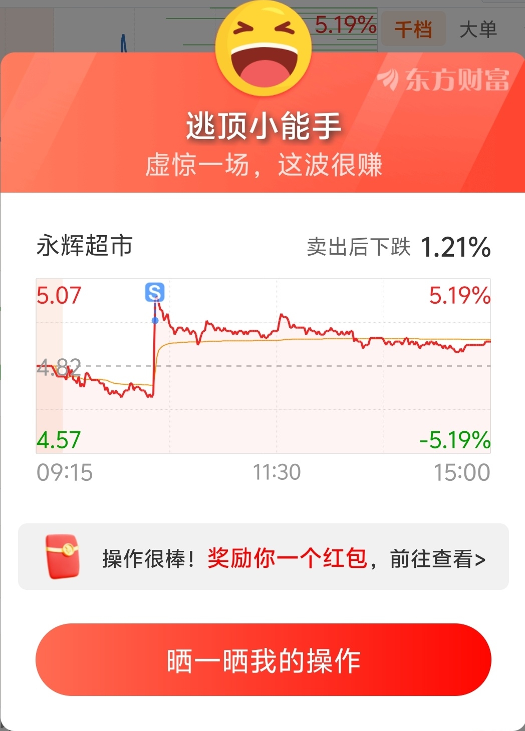 前天4.70建仓,今天4.95清仓,挣了2毛5的差价也就几百块钱小钱,希望大家都