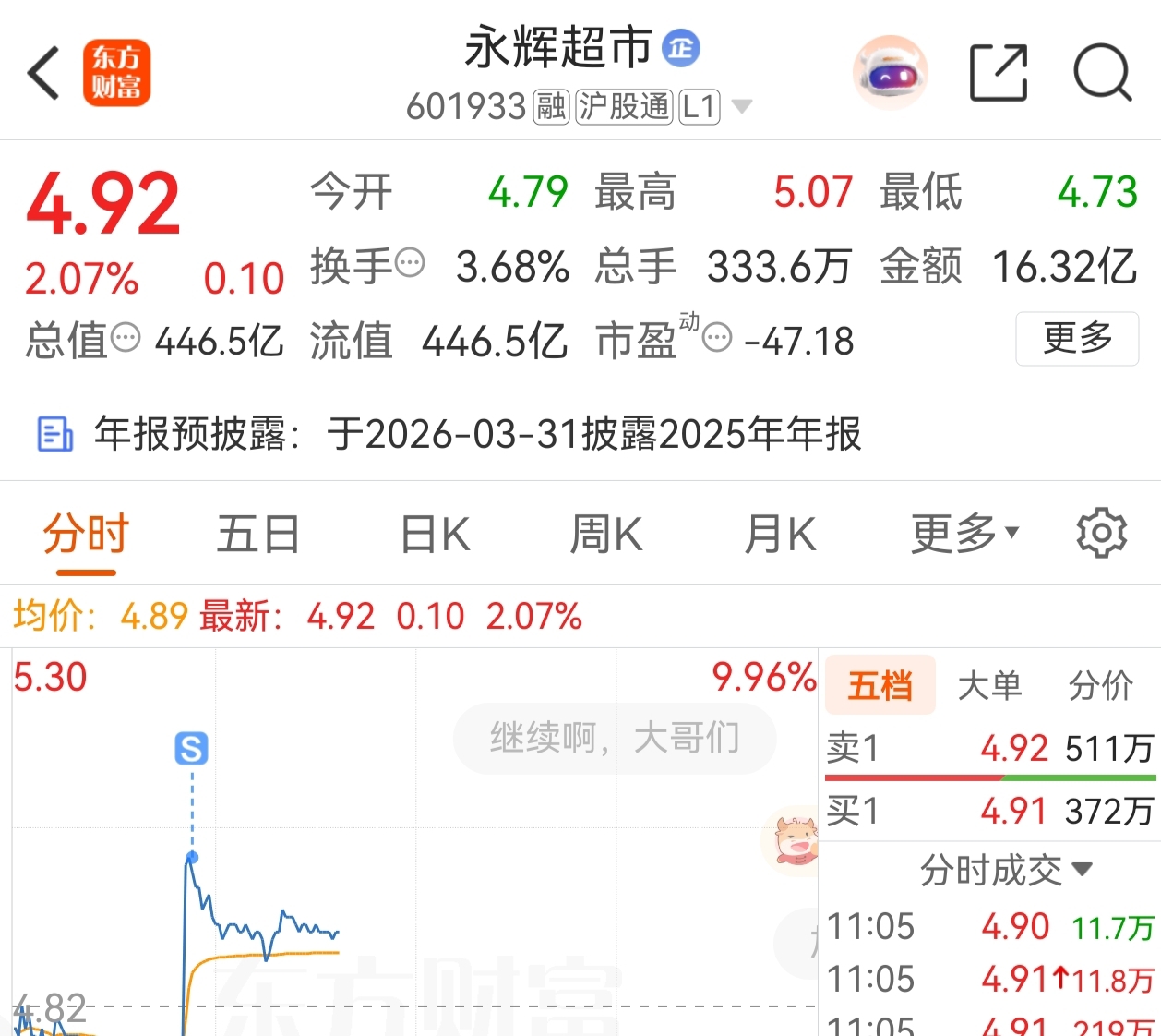 $永辉超市(SH601933)$