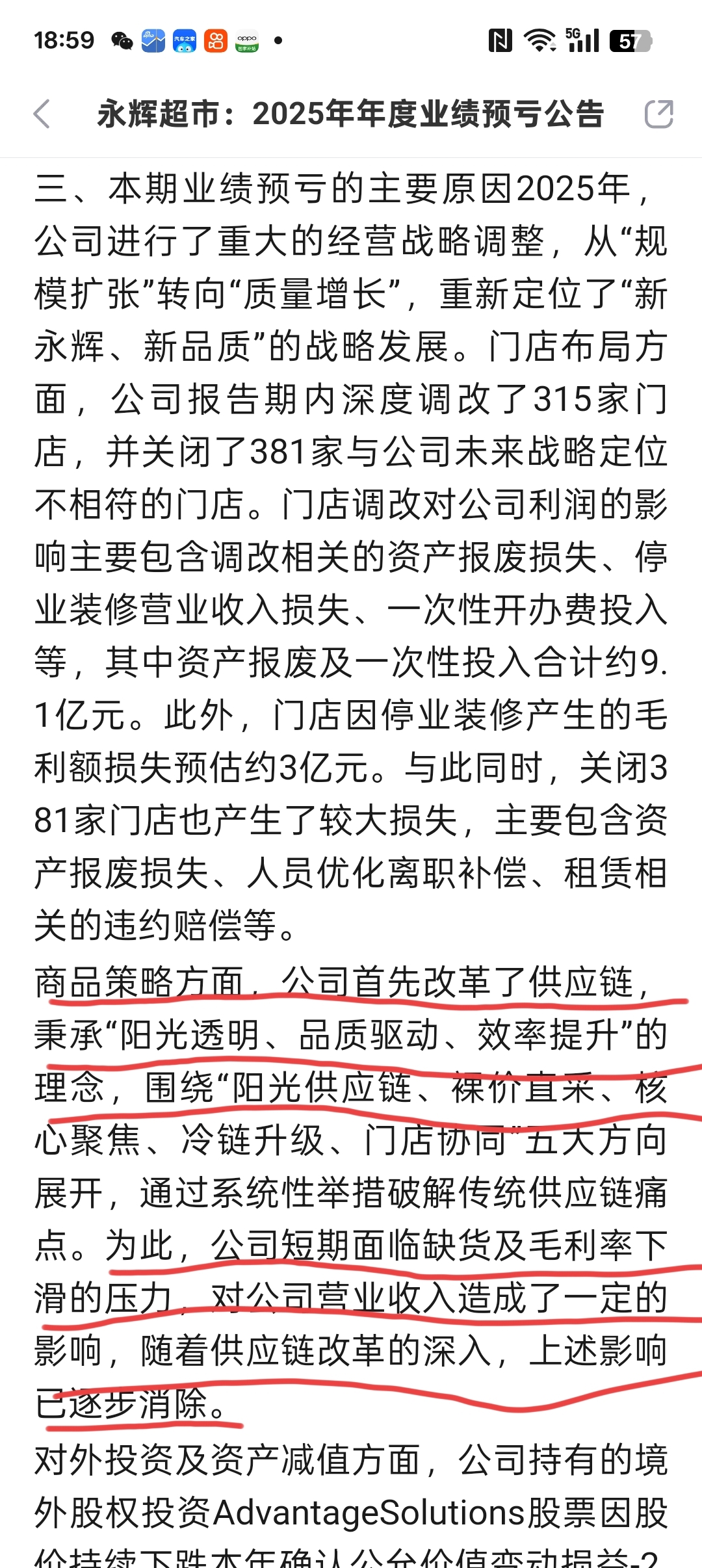 $永辉超市(SH601933)$ 亏损原因就是这个,随着供应链改革的深入,上述影响已逐步消退。这句话你品,你细细的品。