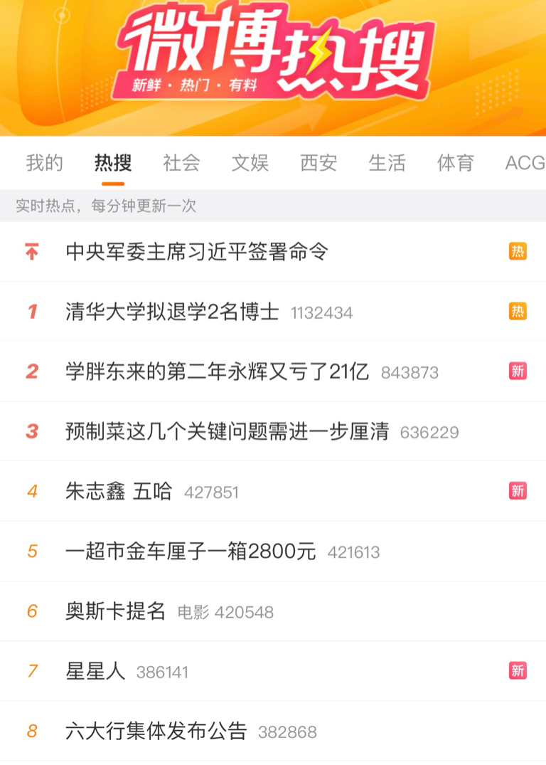 $永辉超市(SH601933)$ 永辉:微博热搜第二名