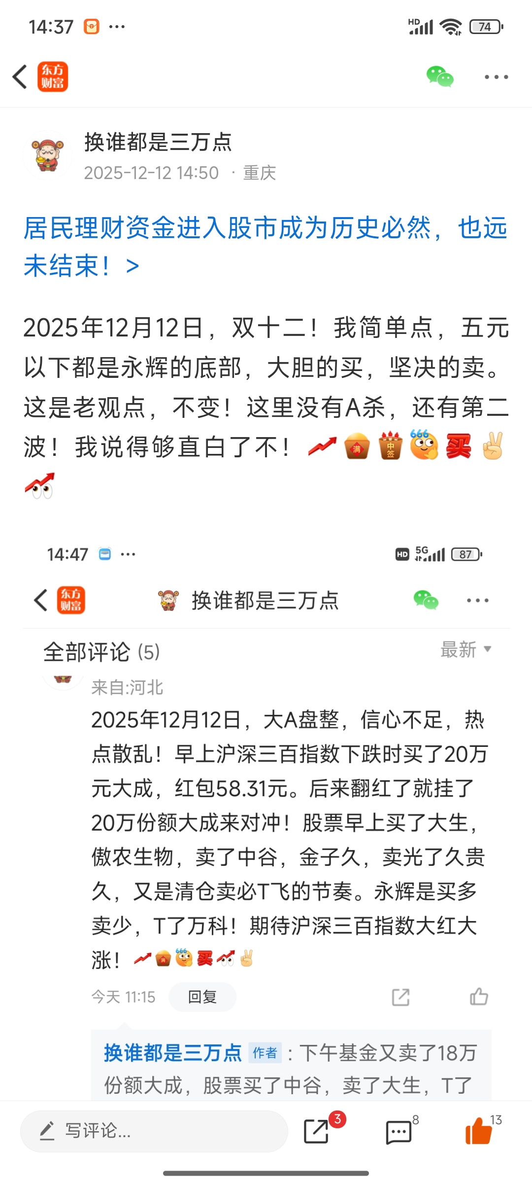 温馨提示: 1.根据《证券法》规定,禁止编造、传播虚假信息或者误导性信息,扰乱证券市场;2.用户在本社区发表的所有资料、言论等仅代表个人观点,与本网站立场无关,不对您构成任何投资建议。用户应基于自己的独立判断,自行决定证券投资并承担相应风险。《东方财富社区管理规定》