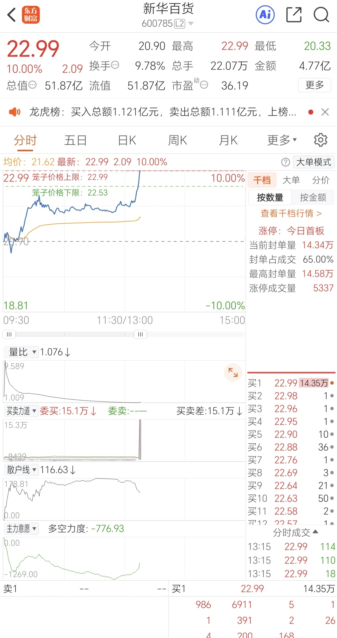 新华百货是龙头直接涨停!之前买了你,跑了就是对的,吃着龙头比这个好多了,直接涨停