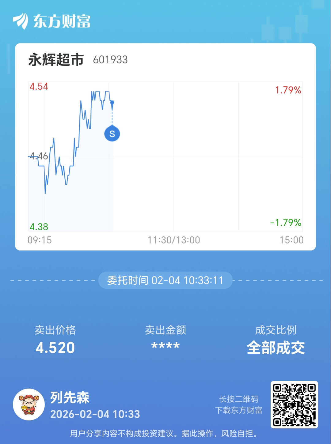 温馨提示: 1.根据《证券法》规定,禁止编造、传播虚假信息或者误导性信息,扰乱证券市场;2.用户在本社区发表的所有资料、言论等仅代表个人观点,与本网站立场无关,不对您构成任何投资建议。用户应基于自己的独立判断,自行决定证券投资并承担相应风险。《东方财富社区管理规定》