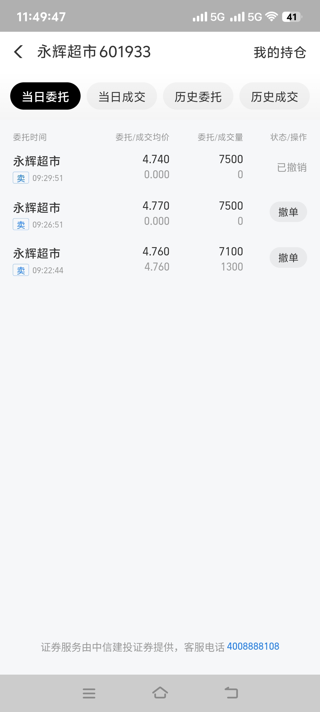 早上挂4.76,4.74都没卖出去,害我错失另一个涨停的票,你个。