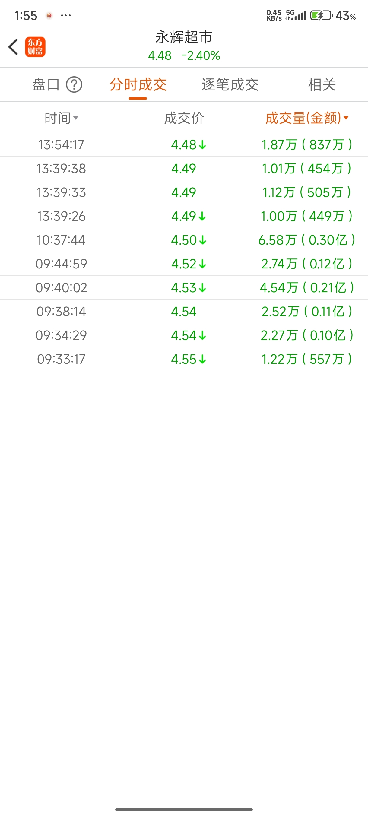 $永辉超市(SH601933)$ 没一笔大单是买,怎么办?