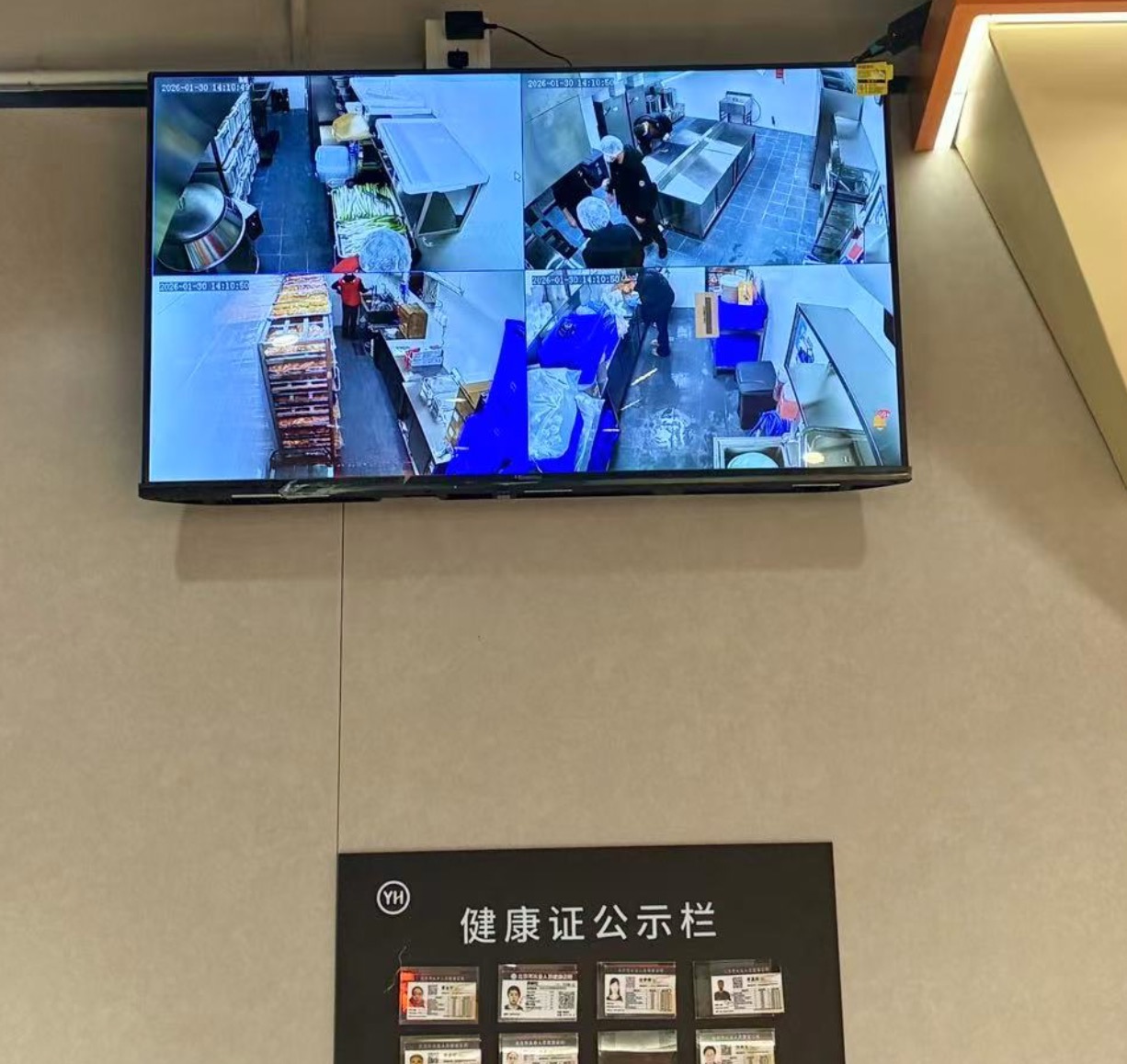 为了提升门店服务的透明度,界面新闻在永辉超市入口的墙壁还看到,部分后厨和生鲜处理区域也通过监控的方式展示给顾客,增加顾客对该超市的信任度。